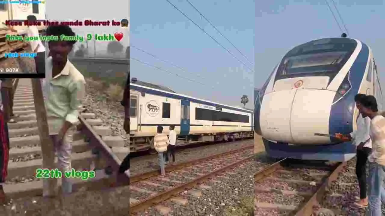పట్టాలపై చెక్క దుంగలను పేర్చి వందే భారత్ రైలును ఆపినట్టు చెప్పుకుంటున్న కొందరు యువకుల వీడియో ప్రస్తుతం నెట్టింట వైరల్ అవుతోంది. ఈ వీడియో జనాగ్రహం వెల్లువెత్తుతోంది.