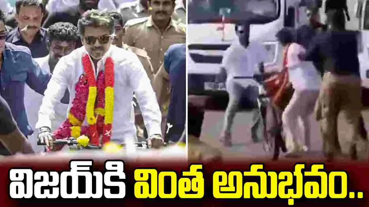 చెన్నై, ఏప్రిల్ 13: అసెంబ్లీ ఎన్నికల కోసం తమిళ స్టార్ హీరో, టీవీకే పార్టీ అధినేత విజయ్ జోరుగా ప్రచారం నిర్వహిస్తున్నారు. ప్రజలను ఆకర్షించటం కోసం వినూత్న రీతిలో ప్రచారం చేస్తున్నారు. రోడ్లపై సైకిల్ తొక్కుతున్నారు. ఈ నేపథ్యంలోనే విజయ్ సైకిల్ ప్రచారానికి సంబంధించిన వీడియో ఒకటి సోషల్ మీడియాలో వైరల్గా మారింది. ఆ వీడియోలో ఏముందంటే.. విజయ్ తన ప్రచార వాహనం ముందు సైకిల్ తొక్కుకుంటూ వెళుతున్నారు. పెద్ద సంఖ్యలో ఫ్యాన్స్ ఆయన వెంట పరుగులు తీస్తున్నారు. ఈ నేపథ్యంలోనే వింత సంఘటన చోటుచేసుకుంది.