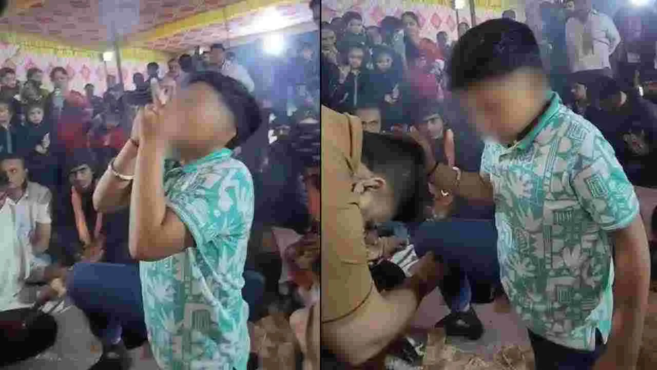 కొంతమంది బాలుడిపై పెద్ద సంఖ్యలో కరెన్సీ నోట్లు విసురుతున్నారు. మరికొంతమంది అతడి కాళ్లు మొక్కి ఆశీర్వాదం తీసుకుంటున్నారు. తాను ఓ దేవుడిని అన్నట్లు ఆ బాలుడు వారిని ఆశీర్వదిస్తున్నాడు. ఆ బాలుడు ఎవరన్న సంగతి తెలియరాలేదు. ఇక, సోషల్ మీడియాలో వైరల్గా మారిన వీడియోపై స్పందిస్తున్న నెటిజన్లు బాలుడిపై.. అక్కడి జనాలపై ఆగ్రహం వ్యక్తం చేస్తున్నారు. ‘చదువుకోవాల్సిన వయసులో ఇలాంటి తప్పు పనులు ఏంటి? బాలుడి తల్లిదండ్రులు ఏం చేస్తున్నారు?’..‘అతడు సిగరెట్ బాబాగా అవతారం ఎత్తాడు’ అంటూ కామెంట్లు చేస్తున్నారు.
