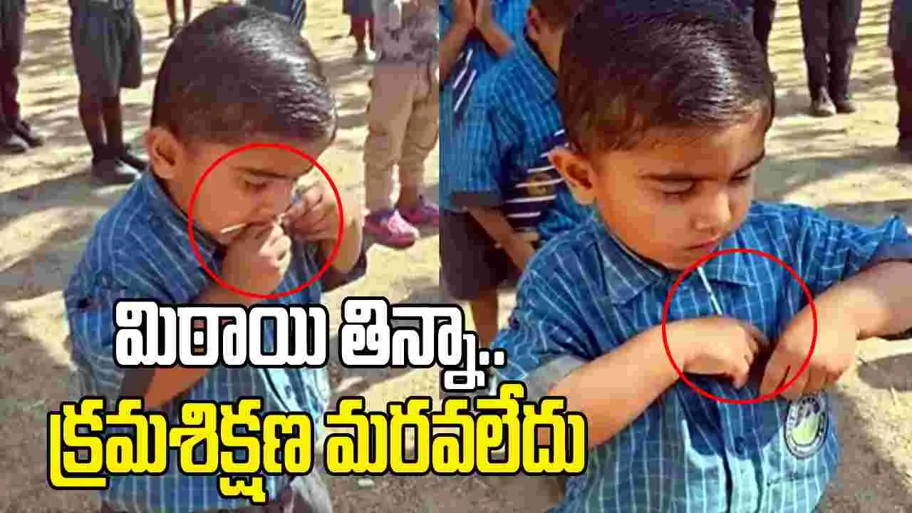 వైరల్ అవుతున్న వీడియోలో.. ఒక పాఠశాల పిల్లలు ప్రార్థన చేస్తున్నారు. ఆ సమయంలో ఒక బాలుడి జేబులో నుంచి మిఠాయి తీసి మెల్లిగా తిన్నాడు. ఆ సమయంలో చిన్నారి ప్రార్థన కొనసాగిస్తూ కళ్లు తెరవలేదు. మరో పిల్లవాడు అతన్ని చూస్తూ ఉండిపోయాడు. మిఠాయి తిన్న తర్వాత, చిన్నారి ఆ మిఠాయి పుల్లను తిరిగి తన జేబులో పెట్టుకుని మళ్లీ చేతులు జోడిస్తూ ప్రార్థన చేస్తుంటాడు. కానీ, అప్పటికే ప్రార్థన ముగిసిపోతుంది. ఆ సమయంలో బాలుడి అమాయకత్వం, ప్రార్థనపై భక్తి, పర్యావరణంపై శ్రద్ధ చూస్తుంటే ఎంతో ముచ్చటేస్తోంది.