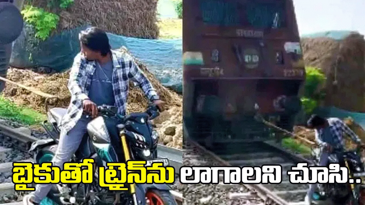 బైకుతో ట్రైన్ను లాగాలని చూసిన యువకుడు.. తర్వాత ఏం జరిగిందంటే..
