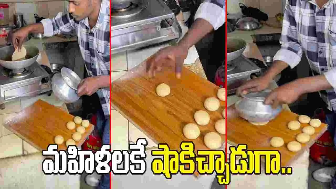 మహిళలు విచిత్రంగా వంట చేయడం, వింత వింత చిట్కాలను ట్రై చేయడం చూసి ఓ వ్యక్తి బాగా ఇన్స్పైర్ అయినట్లున్నాడు. పూరీలు చేయడంలో మహిళలను మించి ఏదైనా కొత్తగా చేయాలని ఫిక్స్ అయ్యాడు. చివరకు..