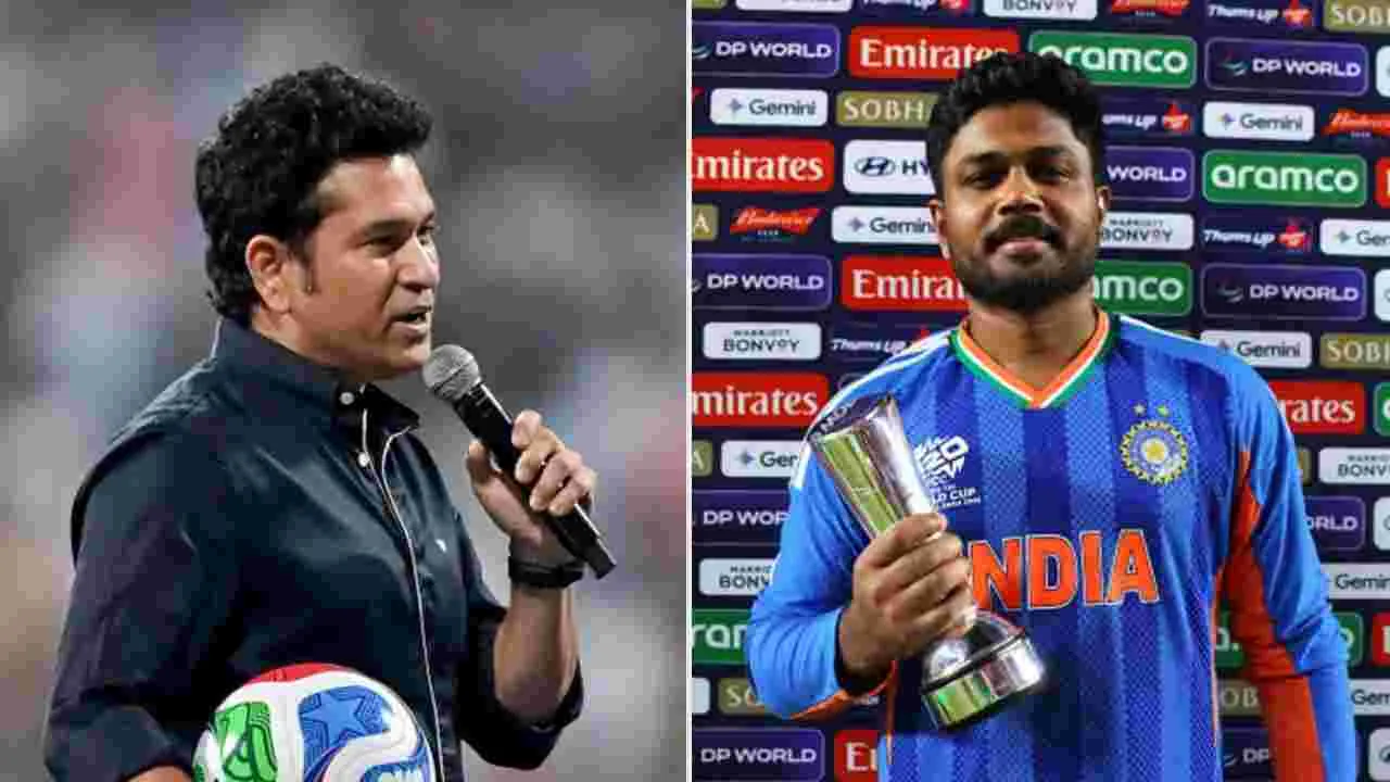 సంజూ శాంసన్.. ప్రస్తుతం టీమిండియా క్రికెట్ అభిమానులకు ఎంతో ఇష్టుడైన క్రికెటర్గా మారిపోయాడు. ప్రస్తుతం టీ20 ప్రపంచకప్లో అత్యంత కీలకమైన మ్యాచ్లలో అద్భుత ఆటతీరుతో ఆకట్టుకున్నాడు. వరుసగా వెస్టిండీస్, ఇంగ్లండ్, న్యూజిలాండ్ మ్యాచ్ల్లో భారీ ఇన్నింగ్స్లు ఆడాడు. ఈ టోర్నీలో కేవలం ఐదు మ్యాచ్లు మాత్రమే ఆడి 321 పరుగులు చేశాడు. అంతేకాదు, 'ప్లేయర్ ఆఫ్ ది టోర్నీ'గా కూడా నిలిచాడు. తన విజయం వెనుక మాస్టర్ బ్లాస్టర్ సచిన్ టెండూల్కర్ ఉన్నాడని సంజూ వెల్లడించాడు (Sanju Samson Player of the Tournament).