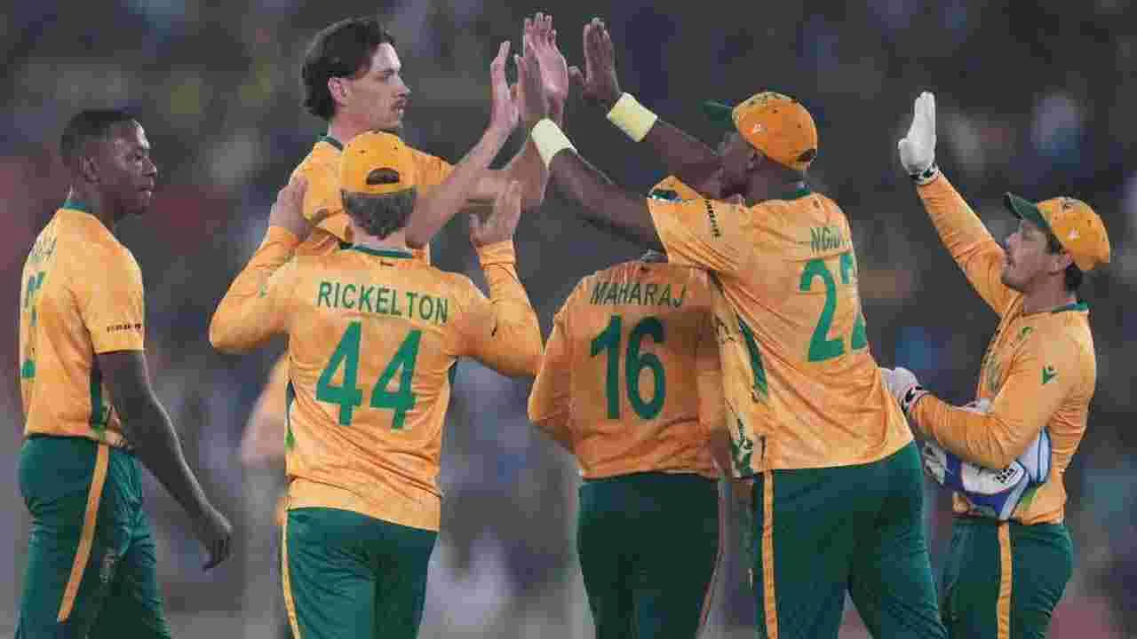 188 పరుగుల లక్ష్యంతో బరిలోకి దిగిన టీమిండియా.. 18.5 ఓవర్లలో 111 పరుగులకు ఆలౌటైంది. టాపార్డర్ తీవ్రంగా విఫలమైంది. దూబే(42) టాప్ స్కోరర్. ఇషాన్ కిషన్(0), అభిషేక్ శర్మ(15), తిలక్ వర్మ(1), సూర్యకుమార్(18), వాషింగ్టన్ సుందర్(11), హార్దిక్ పాండ్య(18), రింకు సింగ్(0), అర్ష్దీప్ సింగ్(1), బుమ్రా(0) వరుసగా పెవిలియన్ బాట పట్టారు. వరుణ్ చక్రవర్తి(0) నాటౌట్గా నిలిచాడు. కేశవ్ మహరాజ్ ఒకే ఓవర్లో 3 వికెట్లు తీశాడు. యాన్సెస్ 4 వికెట్లతో భారత జట్టు పతనాన్ని శాసించాడు. తొలి ఓవర్లోనే మార్క్రమ్ ఇషాన్ను డకౌట్ చేశాడు. బాష్ 2 వికెట్లు తీశాడు. దీంతో టీమిండియా ఓటమి లాంఛనమైంది.