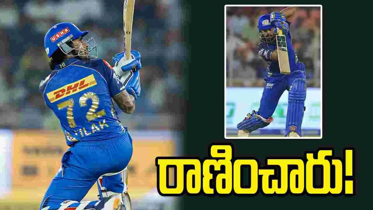 ఇంటర్నెట్ డెస్క్: ఐపీఎల్ 2026లో భాగంగా అహ్మదాబాద్ వేదికగా ముంబై ఇండియన్స్, గుజరాత్ టైటాన్స్ తలపడుతున్నాయి. టాస్ ఓడి బ్యాటింగ్కు దిగిన ముంబై ఇండియన్స్ నిర్ణీత 20 ఓవర్లలో 5 వికెట్లు నష్టపోయి 199 పరుగులు చేసింది. గుజరాత్కు 200 పరుగుల లక్ష్యాన్ని నిర్దేశించింది. స్టార్ బ్యాటర్ తిలక్ వర్మ ఎట్టకేలకు ఫామ్ అందుకుని సెంచరీతో చెలరేగాడు. గుజరాత్ బౌలర్లపై సిక్సర్లు, బౌండరీలతో విరుచుపడ్డాడు. 45 బంతుల్లో 7 సిక్సర్లు, 8 ఫోర్లతో 101 పరుగులు చేసి నాటౌట్గా నిలిచాడు. మరో బ్యాటర్ నమన్ ధీర్(45) త్రుటిలో హాఫ్ సెంచరీ మిస్ చేసుకున్నాడు.