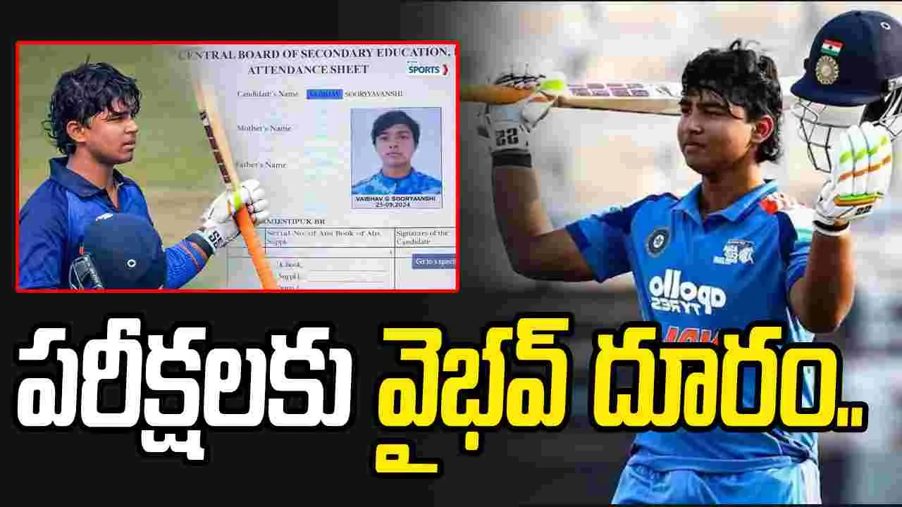 'ప్రస్తుతం వైభవ్ ఫోకస్ అంతా క్రికెట్ పైనే ఉంది. అందుకే ఫిబ్రవరి 17 నుంచి ప్రారంభమయ్యే పదో తరగతి పరీక్షలకు వైభవ్ హాజరవడం లేదు. వచ్చే ఏడాది పదో తరగతి పరీక్షలు రాస్తాడు' అని వైభవ్ తండ్రి సంజీవ్ సూర్యవంశీ తెలిపారు. బీహార్లోని తాజ్పూర్లో నివసించే వైభవ్.. అక్కడే మోడెస్టరీ పాఠశాలలో చదువుతున్నాడు. పదో తరగతి పరీక్షలకు(CBSE Class 10 exams ) సంబంధించి...ఇప్పటికే వైభవ్ అడ్మిట్ కార్డు జారీ అయింది. అలానే అతనికి పరీక్షా కేంద్రం కూడా నిర్ణయించారు. అయితే, పాఠశాల యాజమాన్యం, అతని తండ్రి సంజీవ్ సూర్యవంశీ మధ్య జరిగిన చర్చల తర్వాత, వైభవ్ ఈ సంవత్సరం పరీక్షలు రాయడం లేదని ధ్రువీకరించారు.
