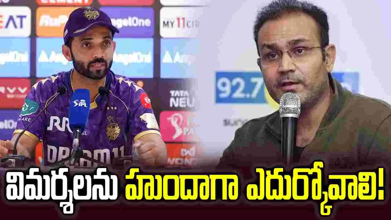 ఇంటర్నెట్ డెస్క్: ఐపీఎల్ 2026లో కోల్కతా నైట్ రైడర్స్ ఇంకా గెలుపు ఖాతా తెరవలేదు. వరుస ఓటములతో ఇబ్బందులను ఎదుర్కొంటున్న వేళ.. కెప్టెన్ రహానె చేసిన వ్యాఖ్యలు చర్చనీయాంశంగా మారాయి. ఈ ఐపీఎల్ సీజన్లో తన స్ట్రైక్ రేట్పై విమర్శలు చేస్తున్న వారిపై రహానె మండిపడిన సంగతి తెలిసిందే. అతడు స్పందించిన విధానం చాలామందిని ఆశ్చర్యపరిచింది. తాజాగా అతడి తీరుపై టీమిండియా మాజీ క్రికెటర్ వీరేంద్ర సెహ్వాగ్ అసహనం వ్యక్తం చేశాడు. విమర్శలకు సమాధానం ఇవ్వాల్సిన పని ఆటగాళ్లకు లేదంటూ హితవు పలికాడు.