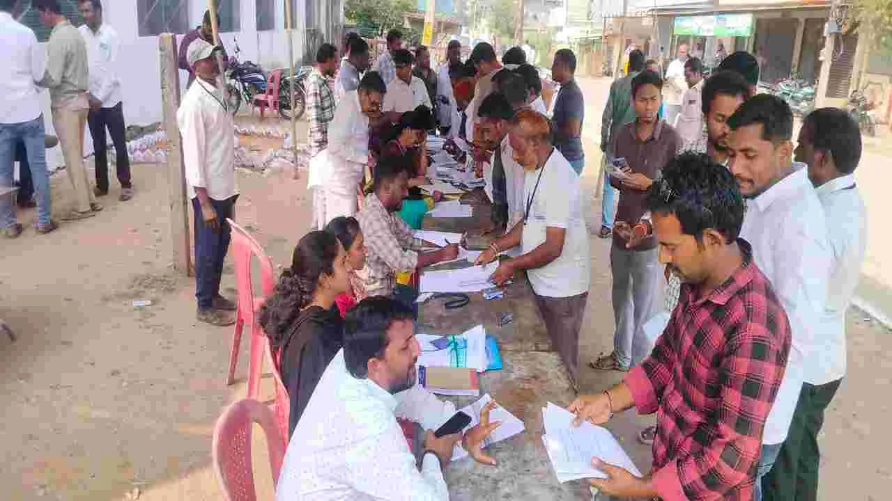 ఆసిఫాబాద్, జనవరి 28 (ఆంధ్రజ్యోతి): జిల్లాలోని ఆసిఫాబాద్, కాగజ్నగర్ మున్సి పాలిటీల్లో బుధవారం మొదటి రోజులు 10 నామినేషన్లు వచ్చాయి. ఆసిఫాబాద్ మున్సిపాలిటీలో ఐదు నామినేషన్లు దాఖలయ్యాయి. కాగజ్నగర్ మున్సిపాలిటీలో ఐదు నామినేషన్లు దాఖలయ్యాయి. మున్సిపల్ ఎన్నికలు జరుగనున్న నేపథ్యంలో జిల్లాలోని రెండు మున్సిపల్ కార్యాలయాల వద్ద సందడి వాతావరణం నెలకొంది. ఎన్నికల్లో బరిలో ఉన్న అభ్యర్థులు తమ నామినేషన్లను దాఖలు చేసేందుకు అవసరమైన ధ్రువీకరణ పత్రాలను పొందేందుకు కార్యాలయాలకు పెద్ద ఎత్తున చేరుకున్నారు. పోటీదారులు ప్రతిపాదిత అభ్యర్థులకు సంబందించిన ఇంటి, తదితర పన్నులు చెల్లించేందుకు ప్రత్యేక కౌంటర్లను ఏర్పాటు చేశారు. అభ్యర్థులకు పూర్తి స్థాయిలో పన్నులు చెల్లించాకే నో డ్యూస్, నో ప్రాపర్టీ టాక్స్ ధ్రువీకరణ పత్రాలను జారీ చేస్తున్నారు. ధ్రువీకరణ పత్రాల జారీలో మున్సిపల్ అధికారులు ఆలస్యం చేస్తున్నారని పోటీదారులు ఆరోపిస్తున్నారు. అన్ని పన్నులు చెల్లించాక నో డ్యూస్, నో ప్రాపర్టీ టాక్స్ ధ్రువపత్రం జారీ కోసం పోటీదారుల అభ్యర్థుల నుంచి రూ. 500 రుసుం వసూలు చేస్తున్నారు. దీంతో పోటీదారులు అన్ని బకాయిలు చెల్లించాక ధ్రువీకరణ పత్రం జారీ కోసం అదనంగా రూ. 500 వసూలు చేయడంపై అభ్యంతరాలు వ్యక్తం చేస్తున్నారు.