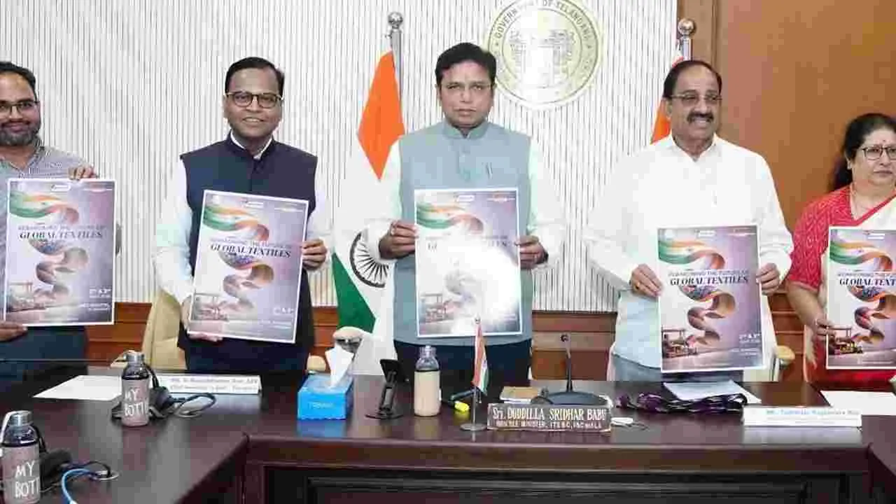 హైదరాబాద్, మార్చి 10 (ఆంధ్రజ్యోతి): తెలంగాణను అంతర్జాతీయ వస్త్ర, దుస్తుల తయారీ కేంద్రంగా తీర్చిదిద్దే లక్ష్యంతో ఏప్రిల్ 2, 3 తేదీల్లో హైదరాబాద్లో నిర్వహించనున్న 13వ ఏసియన్ టెక్స్టైల్ కాన్ఫరెన్స్ పోస్టర్ను రాష్ట్ర మంత్రులు దుద్దిళ్ల శ్రీధర్బాబు, తుమ్మల నాగేశ్వరరావు మంగళవారం ఆవిష్కరించారు. ఈ సదస్సుకు దేశీయ, అంతర్జాతీయ టెక్స్టైల్ పరిశ్రమల ప్రతినిధులు, పెట్టుబడిదారులు, నిపుణులు వస్తారని, తెలంగాణలో టెక్స్టైల్ రంగానికి మరింత ప్రోత్సాహం లభిస్తుందని ఈ సందర్భంగా మంత్రులు తెలిపారు.