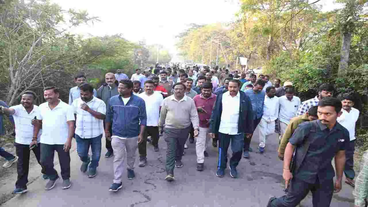 మందమర్రిటౌన్, జనవరి13(ఆంధ్రజ్యోతి): క్యాతన్పల్లి మున్సిపాలిటి అభివృద్దికి పెద్దపీట వేయడంతో మున్సిపాటిని అన్ని రంగాల్లో సమగ్ర అభివృద్ది చేస్తున్నామని రాష్ట్ర కార్మిక ఉపాధి కల్పన గనులశాఖ మంత్రి డాక్టర్ జి. వివేక్ వెంకటస్వామి తెలిపారు. మంగళవారం క్యాతన్పల్లి మున్సిపాలిటిలోని 3, 4, 19, 17 వార్డుల్లో పాదయాత్ర చేపట్టారు. ఈ సందర్భంగా అనంతరం ఆయన మాట్లాడుతూ మున్సిపాలిటిలోని 22 వార్డుల్లో రోడ్లు, డ్రైనేజీల నిర్మాణ ం చేపడుతూనే ఉన్నామని తెలిపారు. అంతేగాకుండా విద్యుత్ స్తంభాలు ఏర్పాటు చేయడం జరిగిందని తెలిపారు. ఇందిరమ్మ ఇండ్లు కూడ మంజూరు చేయడం జరిగిందని తెలిపారు. బీఆర్ఎస్ పాలనలో మున్సిపాలిటి అభివృద్ది కుంటుపడిందన్నారు. తాను ఎమ్మెల్యేగా గెలిచిన వెంటనే మున్సిపాలిటిపై మున్సిపాలిటిపై ప్రత్యేక శ్రద్దపెట్టి పెద్ద ఎత్తున నిదులు తెచ్చానని తెలిపారు. ఓపెన్కాస్టు ప్రభావిత ప్రాంతాల ప్రజల పునరావాస సౌకర్యాలు కల్పించేందుకు సింగరేణి దృష్టికి తీసుకెళ్తానన్నారు. అంతేగాకుండా నిలిచిపోయినటువంటి 76వ జీఓను అమలు చేసి ఇండ్ల క్రమబద్దీకరించేందుకు రెవెన్యూ మంత్రితో మాట్లాడుతానని సింగరేణి భూముల్లో ఇండ్ల స్థలాలకు పట్టాలు ఇచ్చేలా చర్యలు చేపడుతానన్నారు. అంతేగాకుండా మున్సిపాలిటిలోని అభివృద్దికి మరిన్ని నిధులు మంజూరు చేస్తానని పేర్కొన్నారు. అనంతరం 3, 18వార్డుల్లో అభివృద్ది పనులకు శంఖు స్థాపన చేశారు. ఈ కార్యక్రమంలో మంత్రితో పాటు జీఎం రాధాక్రిష్ణ, జిల్లా అద్యక్షులు రఘునాథ్ రెడ్డి, కమిషనర్ రాజు తదితరులు పాల్గొన్నారు.