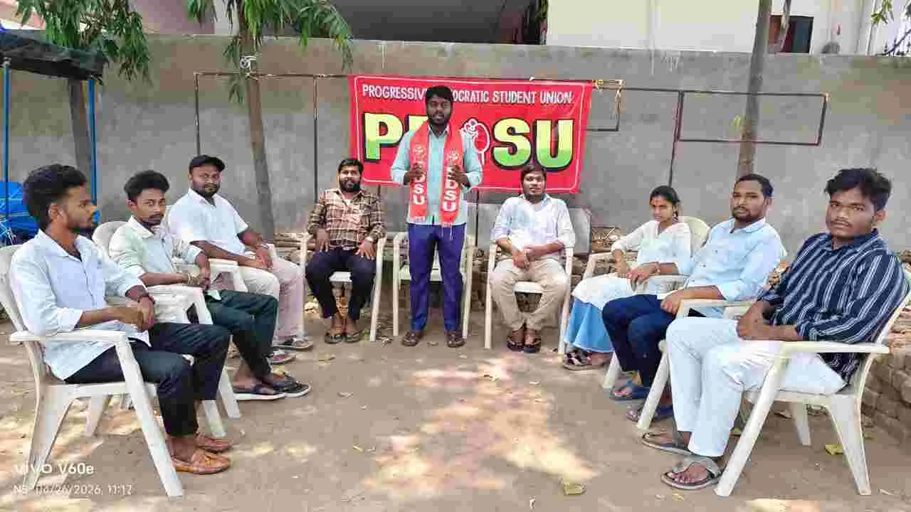 మంచిర్యాల కలెక్టరేట్, ఏప్రిల్ 26 (ఆంధ్రజ్యోతి) : ప్రభుత్వ నిబంధనలు పాటించని పాఠశాలలపై చర్యలు తీసుకోవాలి పీడీఎస్యూ తెలంగాణ రాష్ట్ర ప్రధాన కార్యదర్శి పొడపంగి నాగరాజు డిమాండ్ చేశారు. ఆదివారం జిల్లా కేంద్రంలోని మార్క్స్భవన్లో నిర్వహించిన సమావేశంలో ఆయన మా ట్లాడుతూ ప్రైవేటు, కార్పొరేట్ పాఠశాలలు ఎలాంటి నిబంధనలు పాటించ కుండా ఇష్టారాజ్యాంగా కొనసాగుతున్నాయన్నారు. వేసవి సెలవుల్లో అడ్మిష న్లు చేస్తే చర్యలుంటాయని ప్రభుత్వం సర్య్కూలర్ జారీ చేసినా ప్రైవేటు పాఠశాలలు ఇష్టారాజ్యాంగా అడ్మిషన్లు చేస్తూ లక్షలాది రూపాయల ఫీజు లను ముందస్తుగానే వసూలు చేస్తున్నాయన్నారు. ప్రభుత్వం వెంటనే ఫీజు ల నియంత్రణ చట్టం తీసుకురావాలని, ప్రైవేటు పాటశాలల్లో 25 శాతం సీట్లు పేదలకు కేటాయించాలని డిమాండ్ చేశారు. ఇష్టారాజ్యాంగా కొనసా గుతున్న ప్రైవేటు, కార్పోరేట్ పాఠశాలలపై ప్రభుత్వం వెంటనే చర్యలు తీసుకోవాలని కోరారు. ఈ సమావేశంలో జిల్లా ప్రధాన కార్యదర్శి శ్రీకాంత్, నాయకులు సికిందర్, కార్తీక్, సంజయ్కుమార్, సౌమ్య, మణికంఠ తదితరులు పాల్గొన్నారు.