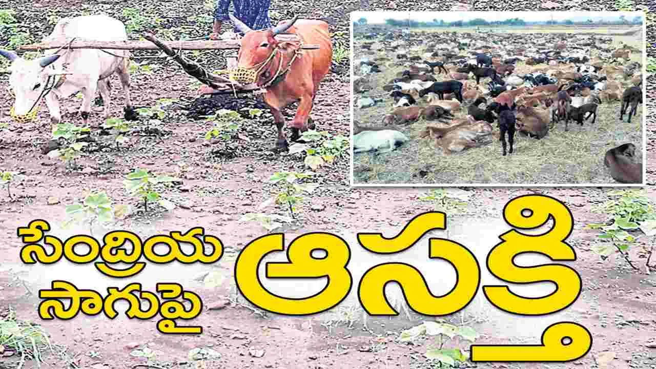 - పంట పొలాల్లో మేకల, గొర్రెల మందలు