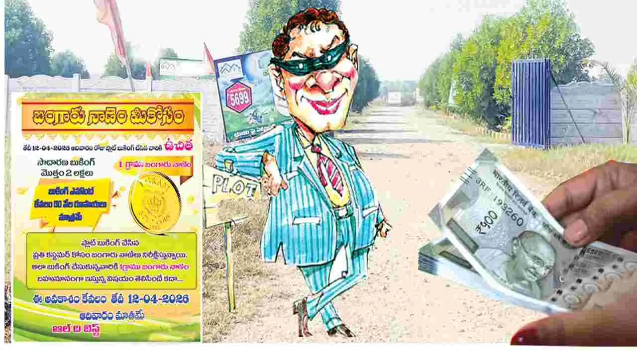 జైపూర్ మండలంలోని నర్వా రోడ్డులో వెలిసిన ఓ వెంచర్ నిర్వాహకులు రకరకాల బంపర్ ఆఫర్లు ప్రకటిస్తూ వినియోగదారులను ఆకర్శించే ప్రయత్నం చేస్తున్నారు. ఎలాంటి లే అవుట్ అనుమతులు లేకుండా వెంచర్ ఏర్పాటు చేయడమేగాక, అందులోని ప్లాట్లను విక్రయించేందుకు ఇటీవల ‘బంగారు నాణెం’ ఆఫర్ ప్రకటించారు. వెంచర్ ప్రారంభం రోజున ప్లాట్లు బుక్ చేసుకున్న వారికి బంగారు నాణెం అందజేస్తామంటూ బహిరంగ ప్రకటనలు చేస్తున్నారు. గతంలో కూడా నిర్వాహకులు స్కూటీ ఆఫర్ ప్రకటించారు. ఏకంగా పెద్దపెద్ద కటౌట్లు పెట్టి, బహిరంగ విక్రయానికి పాల్పడుతున్నారు. ఇదిలా ఉండగా ఆఫర్ల కింద ఇవ్వజూపే వస్తువుల ధరలను కూడా ప్లాట్ల రేట్లోనే జమచేసి, విక్రయిస్తున్నట్లు తెలుస్తోంది. ప్రస్తుతం వెంచర్ ఉన్న చోట చదరపు గజం ధర 5,699 రూపాయలు ప్రకటించగా, వాస్తవానికి అక్కడ 3,500 రూపాయల రేటు పలుకుతున్నట్లు సమాచారం. ఇలా కస్టమర్ల నుంచి అడ్డగోలు వసూలు చేస్తూ అందినకాడికి దండుకుంటున్నారు. మరోవైపు అక్రమంగా ఏర్పాటు చేసిన ఈ వెంచర్లోని ప్లాట్లకు కూడా అధికారులు రిజిస్ట్రేషన్లు చేయడం తీవ్ర చర్చనీయాంశం అవుతోంది. ఇప్పటికైనా జిల్లా ఉన్నతాధికారులు స్పందించి అక్రమ వెంచర్లపై చర్యలు తీసుకోవడం ద్వారా ప్రభుత్వ ఖజానాకు గండి పడకుండా చూడవలసిన అవసరం ఎంతైనా ఉంది.