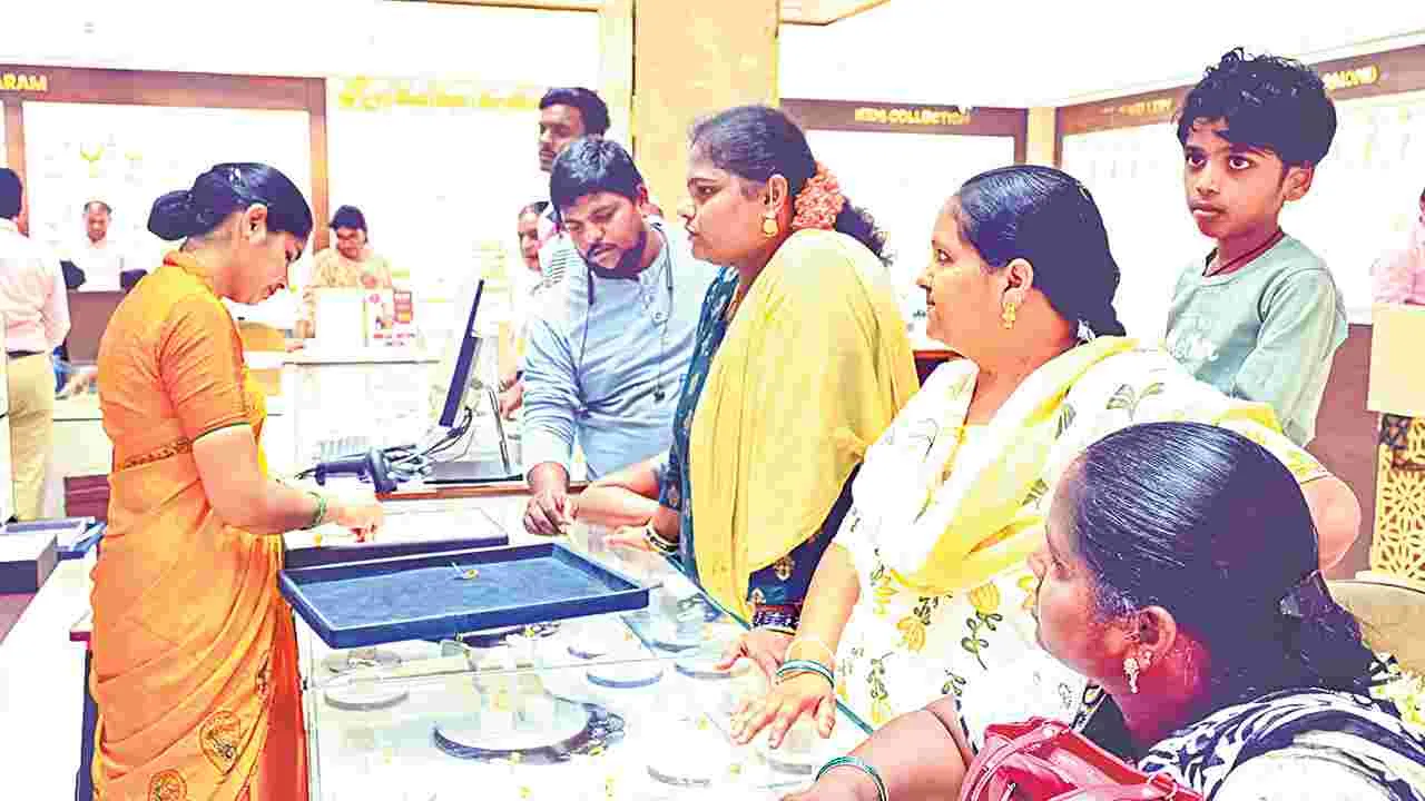 హైదరాబాద్ సిటీ/రాంగోపాల్ పేట, ఏప్రిల్ 19 (ఆంధ్రజ్యోతి): అక్షయ తృతీయ అంటేనే పసిడి కొనుగోళ్ల సందడి. బంగారం కొంటే లక్ష్మీదేవి కటాక్షం లభిస్తుందనే సెంటిమెంట్తో ప్రతిఏటా నగల దుకాణాలు కిటకిటలాడుతుంటాయి. కానీ, ఈ ఏడాది ఆ ఉత్సాహం ఎక్కడా కనిపించలేదు. రికార్డుస్థాయి ధరలు కొనుగోలుదారులను దుకాణాలకు రాకుండా నిలువరించాయి. భారీ ఆఫర్లు, డిస్కౌంట్ల పేరుతో వ్యాపారులు ప్రచారం చేసినా.. అవేవీ వినియోగదారుల మొహంలో ఆనందం నింపలేకపోయాయి. గతేడాది ఇదే పండగ రోజున ఒక్క హైదరాబాద్ నగర పరిధిలోనే సుమారు 100 నుంచి 150 కేజీల బంగారం విక్రయాలు జరిగాయి. కానీ, గతేడాదిలో పోలిస్తే విక్రయాలు దాదాపు సగానికి పడిపోయి.. 60 నుంచి 70 కేజీలకే పరిమితం అయిందంటున్నారు వ్యాపారులు. పసిడి ధరలు విపరీతంగా పెరగడంతో, అమ్మకాలు రూపాయల లెక్కలో ఎక్కువగా కనిపిస్తున్నాయి. విలువ పరంగా గతేడాది కంటే 25-30శాతం అధికం. వ్యాపారపరంగా లాభసాటిగా కనిపించినా, తమ మార్జిన్లు దారుణంగా పడిపోయాయని ఆవేదన వ్యక్తం చేస్తున్నారు. పసిడి ధరలు చుక్కలు చూపిస్తున్న నేపథ్యంలో.. అమ్మకాలు పెంచుకోవడానికి నగల దుకాణాల యజమానులు భారీ ఆఫర్లకు తెరలేపారు. మార్కెట్ రేటు కంటే తక్కువ ధర, మేకింగ్ చార్జీలపై రాయితీలు, క్రెడిట్ కార్డులపై ప్రత్యేక ఆఫర్లు ప్రకటించినా ఫలితం లేకపోయింది. హైదరాబాద్ నగరవాసులు, నగల దుకాణాలకు వెళ్లి కొనుగోలు చేయడానికి బదులుగా ఆన్లైన్ ఫ్లాట్ఫాంలలో కొనుగోళ్లకు మక్కువ చూపారు. ముఖ్యంగా తమ బడ్జెట్కు సరిపోయేలా ఒకగ్రాము, అరగ్రాము పరిమాణంలో చిన్నపాటి నాణేలను కొనేందుకు ఆసక్తి చూపారు.