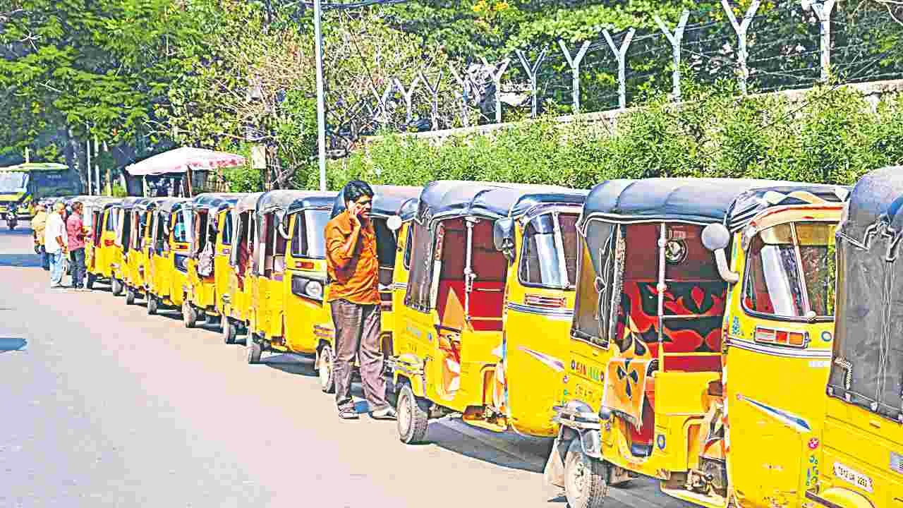 బంకుల్లో కిలోమీటర్ల కొద్దీ ఆటోలు, క్యాబ్ల క్యూ