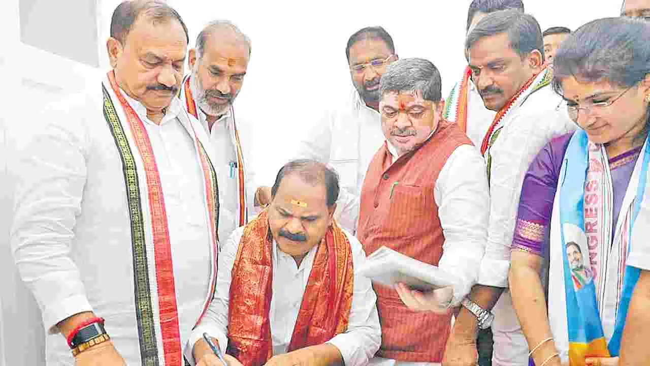 హైదరాబాద్/షాద్నగర్/కేశంపేట, మార్చి 23 (ఆంధ్రజ్యోతి): భవిష్యత్తులో కాంగ్రెస్ నుంచి తెలంగాణకు బీసీ నేత సీఎం అవుతాడని టీపీసీసీ చీఫ్ మహేశ్ కుమార్ గౌడ్ వ్యాఖ్యానించారు. బీఆర్ఎస్, బీజేపీల నుంచి ఒక బీసీ నేత సీఎం అవుతాడని ఆ పార్టీల అధ్యక్షులు కేసీఆర్, ఎన్.రాంచందర్రావులకు చెప్పే దమ్ముందా అంటూ సవాల్ విసిరారు. బీజేపీ, బీఆర్ఎ్సలు బీసీ వ్యతిరేక పార్టీలని విమర్శించారు. సోమవారం గాంధీభవన్లో టీపీసీసీ బీసీ సెల్ చైర్మన్గా షాద్నగర్ ఎమ్మెల్యే వీర్లపల్లి శంకర్, కన్వీనర్గా కేతూరి వెంకటేశ్ బాధ్యతలు స్వీకరించారు. కార్యక్రమానికి మహేశ్ గౌడ్తో పాటు మంత్రులు పొన్నం ప్రభాకర్, వాకిటి శ్రీహరి, ప్రభుత్వ విప్లు ఆది శ్రీనివాస్, బీర్ల అయిలయ్య, పార్టీ సీనియర్ నేత వి.హన్మంతరావు హాజరయ్యారు. ఈ సందర్భంగా మహేశ్ గౌడ్ మాట్లాడుతూ.. రాష్ట్రంలో వంద సీట్లతో కాంగ్రెస్ మరోమారు అధికారంలోకి రావడం ఖాయమన్నారు. అప్పటికి డీలిమిటేషన్ జరిగితే 140 సీట్లతో అధికారంలోకి వస్తామని చెప్పారు. కార్పొరేషన్ల చైర్మన్ పదవుల్లో 65 శాతం బీసీలకు ఇచ్చామని, 67 శాతం పంచాయతీల్లో బీసీ సర్పంచ్లను గెలిపించుకున్నామన్నారు. దేవుళ్ల పేర్లు చెప్పడం తప్ప కేంద్ర మంత్రిగా బీసీలకు బండి సంజయ్ చేసిందేముందని ప్రశ్నించారు. వీర్లపల్లి శంకర్ నేతృత్వంలో కాంగ్రెస్ మరింత బలోపేతమవుతుందని.. బీసీలు ఏకమై కాంగ్రెస్ను అధికారంలోకి తేవడంలో కీలక పాత్ర పోషించాలన్నారు. కులగణన సర్వే ఆధారంగా బీసీలకు విద్య, ఉద్యోగాలు, స్థానిక ఎన్నికల్లో 42 శాతం రిజర్వేషన్ కల్పిస్తూ చట్టం చేసి కేంద్రానికి పంపితే పెండింగ్లో ఎందుకు పెట్టారో బీజేపీ నేతలే సమాధానం చెప్పాలని నిలదీశారు. ఎన్నో రాష్ట్రాలకు బీసీలను సీఎంలు, గవర్నర్లుగా చేసిన పార్టీ కాంగ్రెస్సేనని వ్యాఖ్యానించారు. రాష్ట్రంలోని బలహీన వర్గాలను సంఘటితం చేయాలని ఓబీసీ సెల్కు మంత్రి పొన్నం సూచించారు. అనంతరం శంకర్ను షాద్నగర్ నేతలు, కార్యకర్తలు సన్మానించారు.