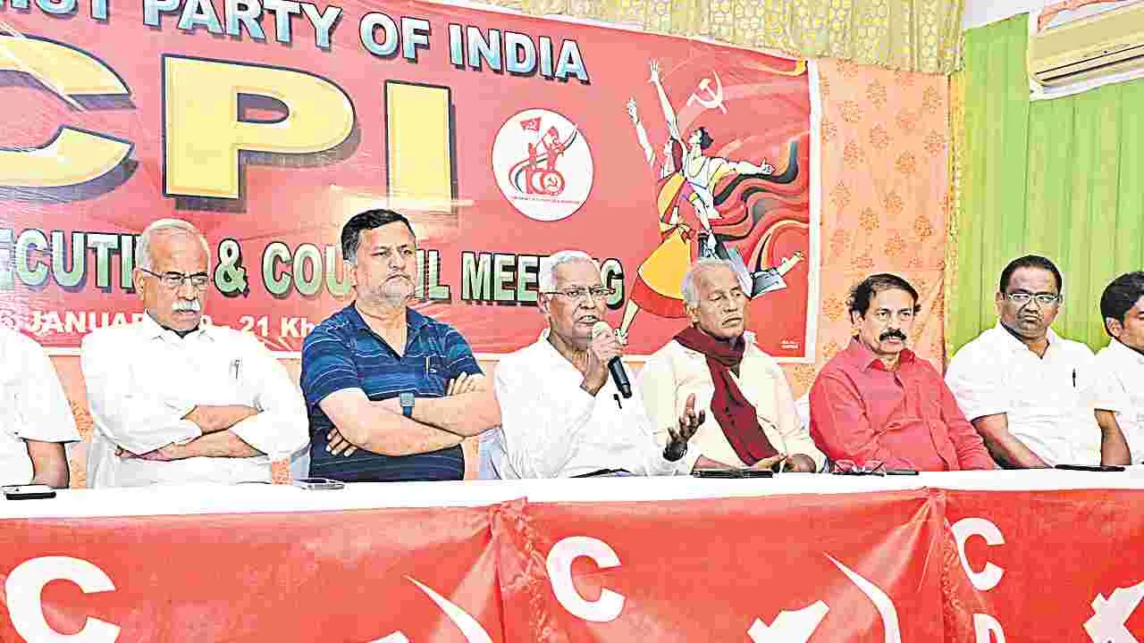 ఖమ్మం, జనవరి 21 (ఆంధ్రజ్యోతి): దేశంలో ప్రజాస్వామ్య పరిరక్షణ కోసం త్వరలో జరిగే పలు రాష్ట్రాల అసెంబ్లీ ఎన్నికల్లో వామపక్ష లౌకిక శక్తులతో కలిసి కలసి పోటీ చేస్తామని సీపీఐ జాతీయ ప్రధాన కార్యదర్శి డి.రాజా వెల్లడించారు. కేరళలో మరోసారి గెలిచి వామపక్ష ప్రభుత్వాన్ని సుస్థిరం చేయనున్నామని, తమిళనాడు, అసోం, పుదుచ్చేరి, పశ్చిమబెంగాల్ తదితర రాష్ట్రాల్లో బీజేపీని ఓడించి.. వామపక్ష పార్టీల బలాన్ని మరింతగా పెంచుకునేందుకు ప్రయత్నిస్తామని తెలిపారు. ఖమ్మంలో జరుగుతున్న సీపీఐ శతాబ్ది ఉత్సవాల ముగింపు సందర్భంగా ఈనెల 18న భారీ బహిరంగ సభ నిర్వహించగా 19నుంచి బుధవారం వరకు జాతీయ కౌన్సిల్ సమావేశాలు నిర్వహించారు. బుధవారం కౌన్సిల్ సమావేశాల ముగింపు అనంతరం డి.రాజా మీడియా సమావేశంలో మాట్లాడారు. దేశంలో బీజేపీ విద్వేషపూరిత రాజకీయాలు అడ్డుకొనేందుకు అన్ని ప్రజాస్వామ్య లౌకిక శక్తులను ఏకం చేసి పోరాటాలు సాగించాలని నిర్ణయించామని తెలిపారు. శతాబ్ది ఉత్సవ వేడుకల స్ఫూర్తితో ప్రజాస్వామ్య ఉద్యమాలు చేపడతామని, వామపక్ష ఉద్యమాలకు ఆంద్రా, తెలంగాణ రాష్ట్రాలు కంచుకోట లాంటివని, ఈప్రాంతాలకు చెందిన చండ్ర రాజేశ్వరరావు, సుందరయ్య లాంటి నేతలు వారసత్వం కొనసాగిస్తామన్నారు. రష్యా నుంచి చమురు కొనొద్దని భారత్ను ఆదేశించే హక్కు అమెరికాకు లేదన్నారు.పాలస్థీనా శతాబ్ది ఉత్సవాలు ఖమ్మంలో విజయవంతంగా ముగిసిన నేపథ్యంలో బుధవారం సాయంత్రం ఖమ్మంలో సప్తపది ఫంక్షన్హాల్ వద్ద ఎర్రబెలూన్లకు సీపీఐ జెండా కట్టి జాతీయ ప్రదాన కార్యదర్శి రాజాతోపాటు రాష్ట్ర కార్యదర్శి కూనంనేని ఇతర నాయకులు ఆకాశంలోకి బెలూన్లు వదిలి ఉత్సవాలు ముగిసినట్టు ప్రకటించారు. కాగా సీపీఐ జాతీయ కౌన్సిల్ సమవేశాల్లో తొమ్మింది తీర్మానాలు ఆమోదించారు. ప్రైవేటు రంగంలో రిజర్వేషన్లను ఏర్పాటు చేయాలని డిమాండ్ చేస్తూ తీర్మానించారు. మహత్మాగాంధీ జాతీయ గ్రామీణ ఉపాధి పథకాన్ని రద్దుచేసి ఆస్థానంలో మరోపేరుతో కొత్త పథకం ప్రవేశపెట్టడాన్ని నేషనల్ కౌన్సిల్ ఖండించింది.