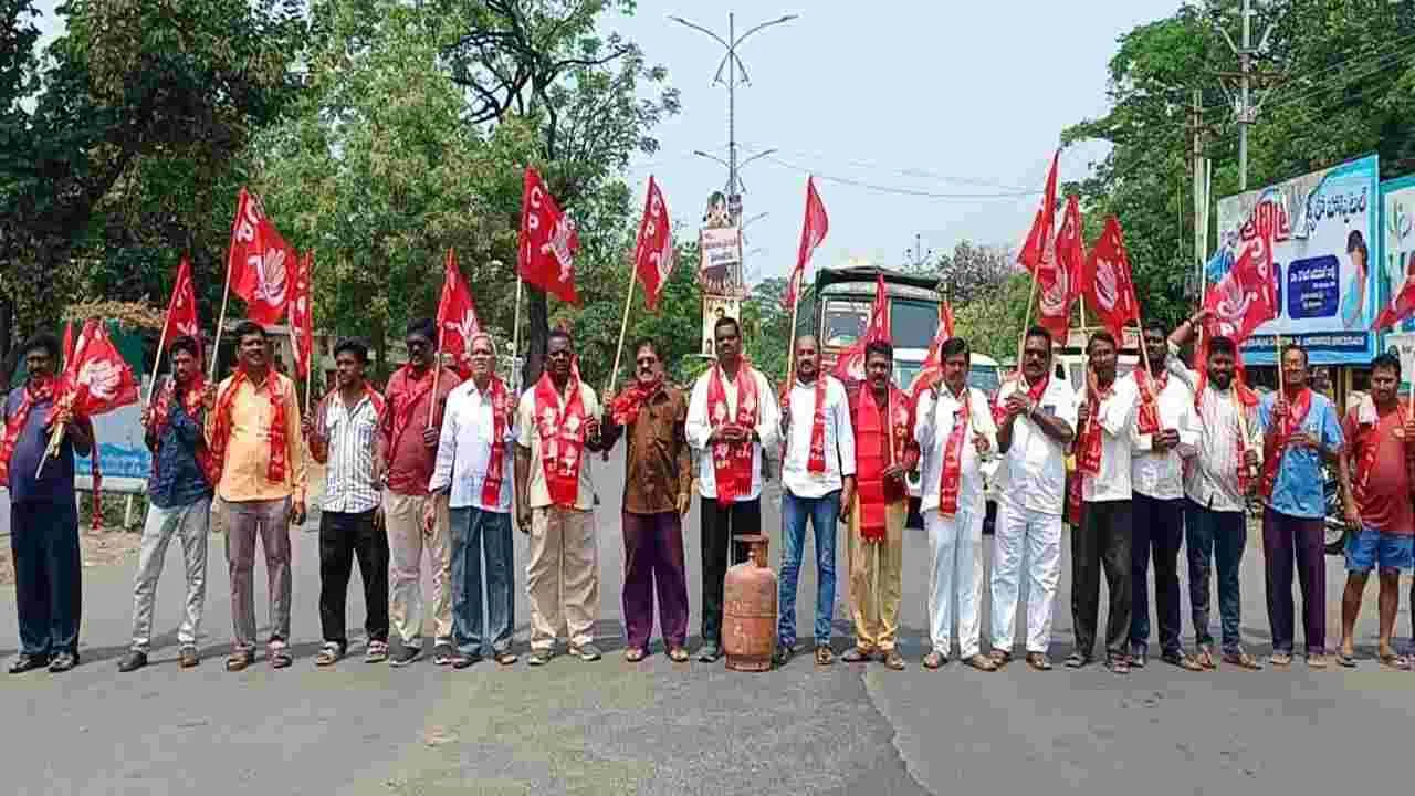 గ్యాస్ ధరలు తగ్గించాలని సీపీఐ రాస్తారోకో