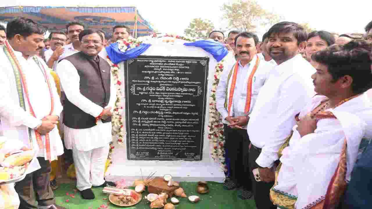 చెన్నూరు, జనవరి 19 (ఆంధ్రజ్యోతి) : రాష్ట్రంలో ప్రజలతో మమేకమై ప్రభుత్వం చేపట్టిన అభివృద్ధి, సంక్షేమ పథకాలను సమర్ధవంతంగా అమలు చేస్తున్నామని రాష్ట్ర కార్మిక, ఉపాధి శిక్షణ, గనులు, భూగర్భశాఖ మంత్రి వివేక్వెం కటస్వామి పే ర్కొన్నారు. సోమవారం చెన్నూరు మండల కేంద్రంలో అడ్వా న్స్డ్ టెక్నాలజీ సెంటర్ నిర్మాణానికి రాష్ట్ర పార్యటక, సాంస్కృ తిక శాఖ మంత్రి, జిల్లా ఇన్చార్జి మంత్రి జూపల్లి కృష్ణారావు, కలెక్టర్ కుమార్ దీపక్తో కలిసి భూమి పూజ చేశారు. అనం తరం ఏర్పాటు చేసిన సమావేశంలో మంత్రి మాట్లాడు తూ చెన్నూరు పట్టణంలో రూ.47.11 కోట్లతో అడ్వాన్స్డ్ టెక్నాలజీ సెంటర్ను మంజూరు చేసి నిర్మాణానికి భూమి పూజ చేశా మన్నారు. నియోజకవర్గంలో 40 కోట్లతో అంతర్గత రహదా రు లు, మురుగు కాలువల నిర్మాణం చేపట్టామని, సమస్యల ప రిష్కారంపై ప్రత్యేక దృష్టి సారిస్తున్నామన్నారు. విద్యారంగా న్ని బలోపేతం చేసేందుకు సోమనపల్లి ప్రాంతంలో ఇంటిగ్రే టెడ్ రెసిడెన్షియల్ పాఠశాలను మంజూరు చేసి నిర్మాణం చే పడుతున్నామన్నారు. జైపూర్ పవర్ ప్లాంట్ను విస్తరిస్తూ మ రొక ప్లాంట్ నిర్మాణం చేపట్టామని, తద్వారా ఈ ప్రాంత నిరు ద్యోగ యువతకు ఉద్యోగావకా శాలు లభిస్తాయన్నారు. చెన్నూ రులోని మహిళ సంఘాలకు పెట్రోల్ బంక్ మంజూరు చేశా మన్నారు. ఈ ప్రాంతంలో ఇసుక మాఫియాపై కఠిన చర్యలు తీసుకుంటున్నామని, ప్రభుత్వ మన ఇసుక వాహనం ద్వారా తక్కువ ధరకు వినియోగారులకు ఇసుకను పంపిణీ చేస్తున్నా మన్నారు. జిల్లా ఇన్చార్జి మంత్రి కృష్ణారావు మాట్లాడుతూ రాష్ట్రాన్ని అభివృద్ధి పథంలో నడిపిస్తూ ప్రజల సంక్షేమం కోసం కృషి చేస్తున్నామన్నారు. రైతుల సంక్షేమంలో భాగంగా రూ. 20 వేల కోట్ల రుణమాఫీని రాష్ట్ర ప్రభుత్వం చేసిందన్నారు. క లెక్టర్ కుమార్ దీపక్ మాట్లాడుతూ అడ్వాన్స్డ్ టెక్నాలజీ సెం టర్ ద్వారా సమీప ప్రాంతాల్లోని నిరుద్యోగ యువతకు అధు నాతన సాంకేతిక నైపుణ్య శిక్షణ అందించి స్వయం ఉపాధి పొందేలా తర్ఫీదు ఇస్తామన్నారు. అనంతరం చెన్నూరు పరిధి లోని 214 స్వయం సహాయక సంఘాల సభ్యులకు రూ. 76,65,430 చెక్కులను అందజేశారు. చెన్నూరు పట్టణంలోని 16వ వార్డులో ముదిరాజ్ భవన నిర్మాణానికి, 8వ వార్డులో బైపాస్రోడ్డు నిర్మాణానికి, 9వ వార్డు సీసీ రోడ్ల నిర్మాణానికి, 15 వవార్డులో నూతన ఆస్పిరేషన్ టాయిలెట్ల నిర్మాణ పనులకు శంకుస్ధాపన చేశారు. ఈ కార్యక్రమంలో అధికారులు, ప్రజాప్ర తినిదులు, నాయకులు పాల్గొన్నారు.