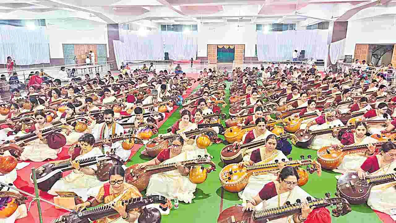 108 వీణలతో ‘కచ్చపి అష్టోత్తర స్వరార్చన’