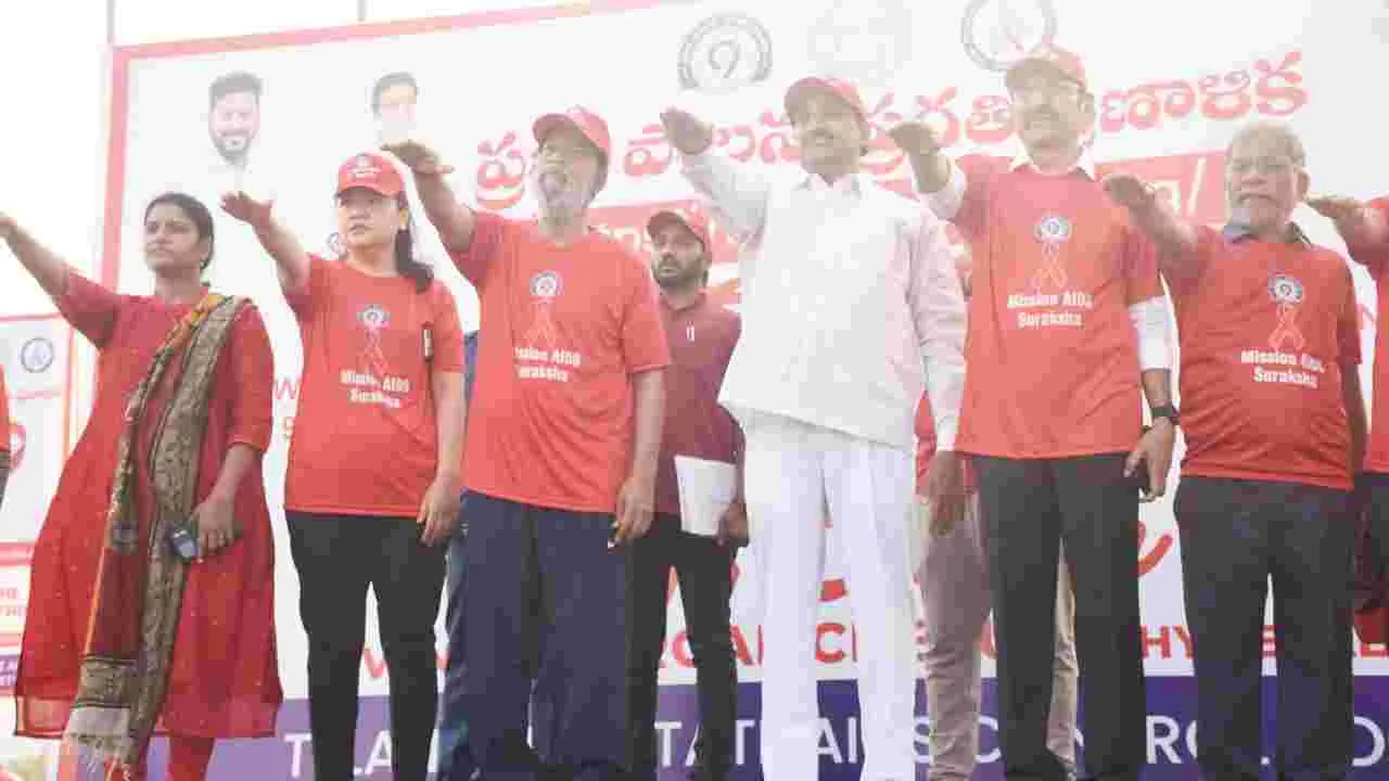 ఎయిడ్స్ నివారణ కోసం తమ ప్రభుత్వం ఉచితంగా టెస్టులు, చికిత్స, మందులు అందిస్తోందని మంత్రి దామోదర్ రాజనర్సింహ వివరించారు. రాష్ట్రవ్యాప్తంగా 127 టెస్టింగ్ సెంటర్లు, 33 ART సెంటర్ల ద్వారా 1.14 లక్షల మంది పేషెంట్లకు వైద్య సేవలు అందిస్తున్నామని వెల్లడించారు. ముఖ్యంగా యువతకు ఒక సూచన సెడెంటరీ లైఫ్ స్టైల్_ అనారోగ్యకర అలవాట్లతో జీవితాన్ని పాడు చేసుకోవద్దని సూచించారు. ఆరోగ్యంగా లేకుంటే ఎంత మంచి సంపాదన ఉన్నా.. వృథానే అని చెప్పారు. డ్రగ్స్కు దూరంగా ఉండాలని.. డ్రగ్స్ చాలా ప్రమాదకరమని అన్నారు. మరీ ముఖ్యంగా ఇంజక్షన్ల ద్వారా డ్రగ్స్ తీసుకోవడం వల్ల హెచ్ఐవీ, ఇతర రోగాలు వ్యాపించే ప్రమాదం ఉందని చెప్పుకొచ్చారు. వ్యక్తులు ఆరోగ్యంగా ఉంటే కుటుంబం కూడా ఆరోగ్యంగా ఉంటుందని అన్నారు. ఆరోగ్యవంతమైన కుటుంబంతో ఆరోగ్యవంతమైన సమాజం, బలమైన రాష్ట్రం నిర్మితమవుతాయని వెల్లడించారు. మనందరం కలిసి మరింత వైబ్రెంట్ తెలంగాణను తయారు చేసుకుందామని మంత్రి దామోదర్ రాజనర్సింహ పిలుపునిచ్చారు.