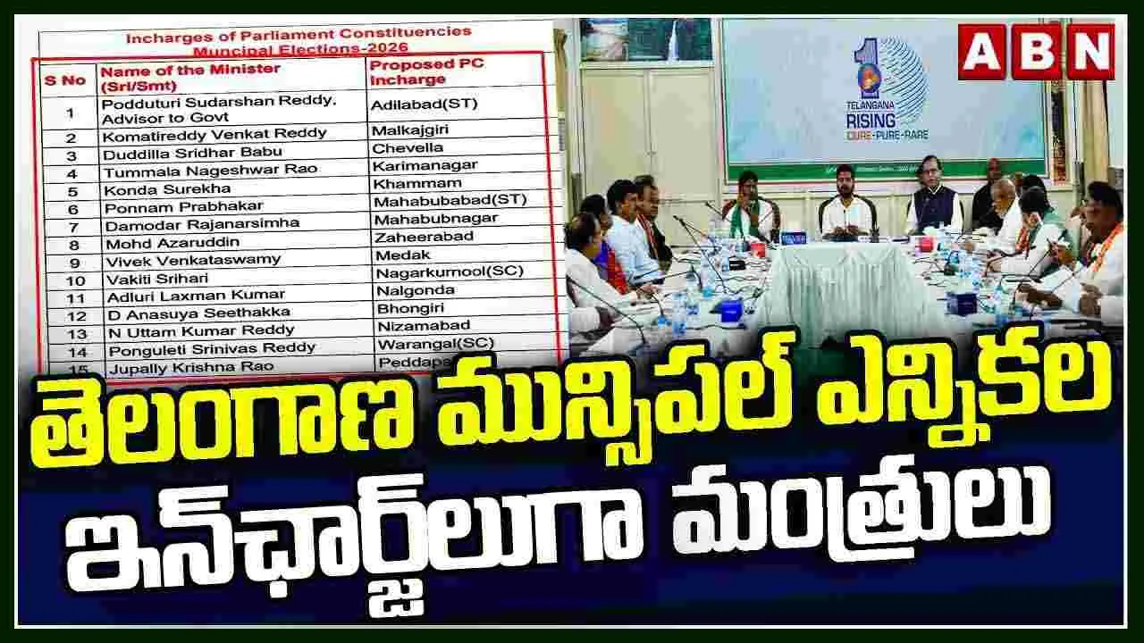 తెలంగాణలో మున్నిపల్ ఎన్నికలను అధికార కాంగ్రెస్ పార్టీ ప్రతిష్ఠాత్మకంగా తీసుకుంది. ఈ క్రమంలో ఈ ఎన్నికలకు ఇన్ఛార్జ్లుగా మంత్రులను నియమిస్తూ కాంగ్రెస్ నిర్ణయం తీసుకుంది.