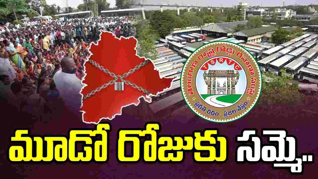 తెలంగాణలో ఆర్టీసీ కార్మికుల సమ్మె మూడో రోజుకు చేరుకుంది. తమ డిమాండ్లు పరిష్కరించే వరకూ సమ్మె విరమించేది లేదని కార్మికులు తేల్చి చెబుతున్నారు.