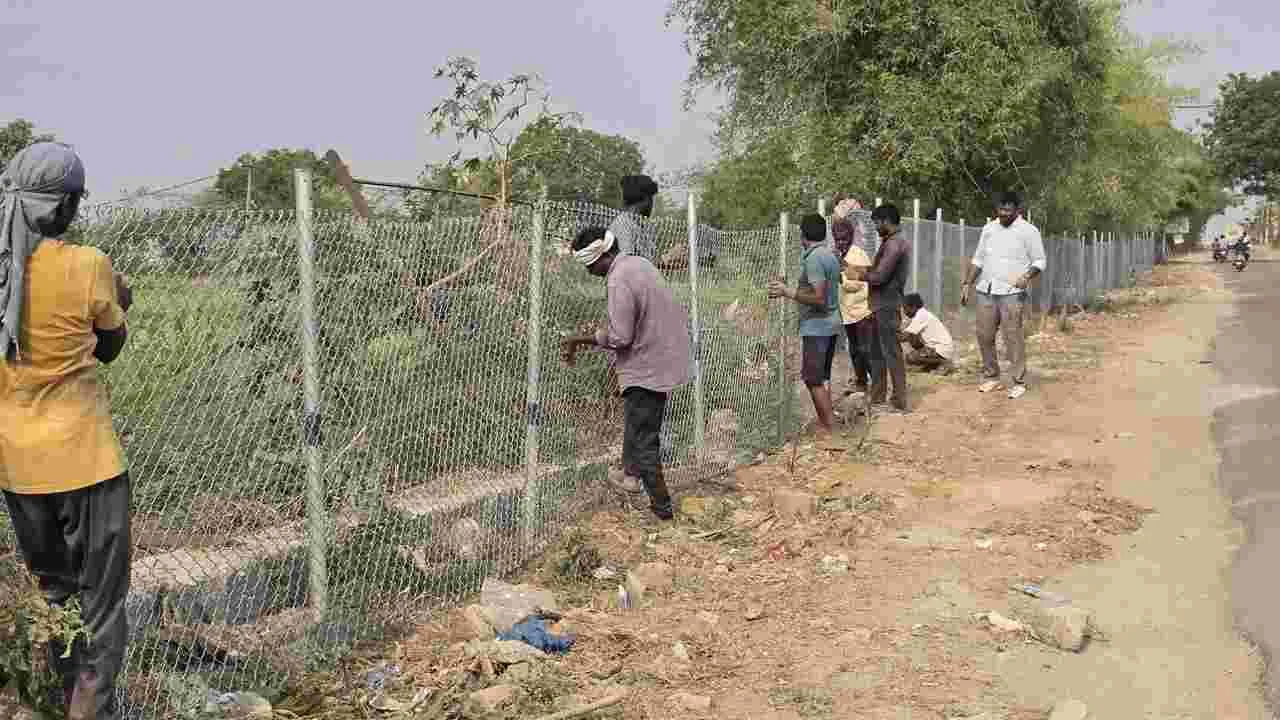 అమీన్పూర్,ఏప్రిల్ 13 (ఆంధ్రజ్యోతి): సంగారెడ్డి జిల్లా అమీన్పూర్ మండలం ఐలాపూర్ గ్రామంలో ప్రభుత్వ భూముల పరిరక్షణలో భాగంగా హైడ్రా చేపట్టిన భారీ ఆపరేషన్ మూడో రోజు సోమవారం కూడా కొనసాగింది. వివాదాస్పద భూముల్లో మళ్లీ కబ్జాలకు తావు లేకుండా హైడ్రా రక్షణ ఏర్పాట్లు చేస్తోంది. బీఆర్ఎస్ నాయకుడు ఎంఏ ముఖీం కుటుంబం అధీనంలో ఉన్న గెస్ట్హౌస్ను నేలమట్టం చేసి సుమారు 30 ఎకరాల వ్యవసాయ క్షేత్రాన్ని స్వాధీనం చేసుకునే పనులు వేగంగా జరుగుతున్నాయి. గతంలో ముఖీం కుటుంబం వేసిన కంచె, ప్రహరీలను తొలగించి కొత్తగా కంచె వేస్తున్నారు. వివాదాస్పద 823 ఎకరాల భూమి చుట్టూ కంచె నిర్మాణ పనులు జరుగుతున్నాయి. బీరంగూడ రోడ్డు వైపు ఉన్న విశాలమైన ఖాళీ ప్రదేశానికి, రోడ్డుకు అవత లివైపు ఉన్న స్థలానికి రెండు వైపులా కంచె వేస్తున్నారు. ఐలాపూర్ గ్రామం చుట్టూ ఉన్న కిష్టారెడ్డిపేట, పటేల్గూడ, అమీన్పూర్ తదితర సరిహద్దు గ్రామాలను ఆనుకొని కంచె వేస్తున్నారు. కంచె వేయడంతో సరిపెట్టకుండా.. దానిని జియో ట్యాగింగ్తో అనుసంధానం చేస్తున్నారు. దీని వల్ల ఎక్కడ కంచె ధ్వంసమైనా క్షణాల్లో హైడ్రాకు సమాచారం చేరుతుంది. సీసీ కెమెరాలను కూడా ఏర్పాటుచేసే యోచనలో ఉన్నట్లు తెలిసింది. దీంతో పాటు నిత్యం స్థానిక పోలీసులు, హైడ్రా, రెవెన్యూ, మున్సిపల్ సిబ్బంది గస్తీని కొనసాగిస్తారని అధికారులు తెలిపారు. ఎవరైనా భూముల కబ్జాకు ప్రయత్నిస్తే కేసులు నమోదు చేయాలని హైడ్రా ఉన్నతాధికారుల నుంచి స్థానిక పోలీసులకు ఆదేశాలు జారీ అయ్యాయి.