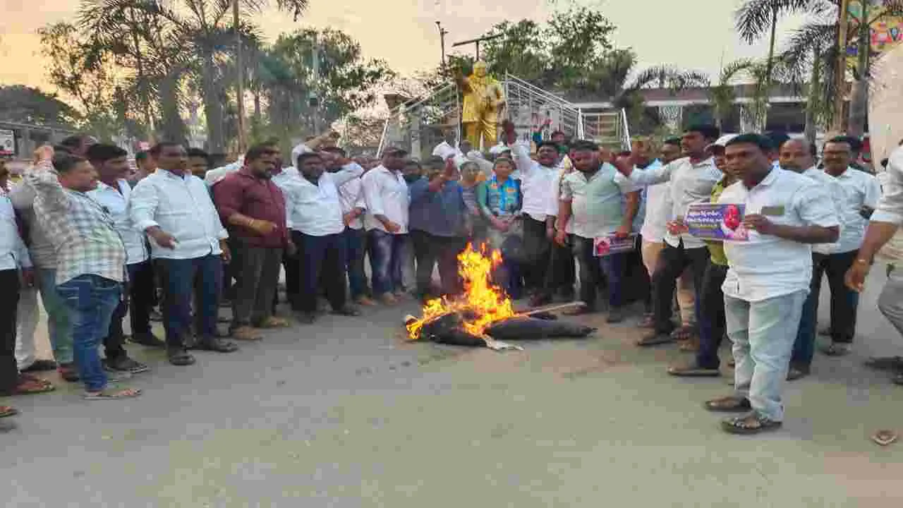 చిన్నారి మౌనిక మృతికి బాధ్యులపైన ప్రభుత్వం చర్యలు తీసుకోవాలని డిమాండ్ చేస్తూ ఎస్సీ, ఎస్టీ, బీసీ, మైనార్టీల నాయకులు జిల్లా కేంద్రం అంబేద్కర్ చౌరస్తా వద్ద బాధ్యుల దిష్టి బొమ్మను దహనం చేసి నిరసనలు తెలిపారు.