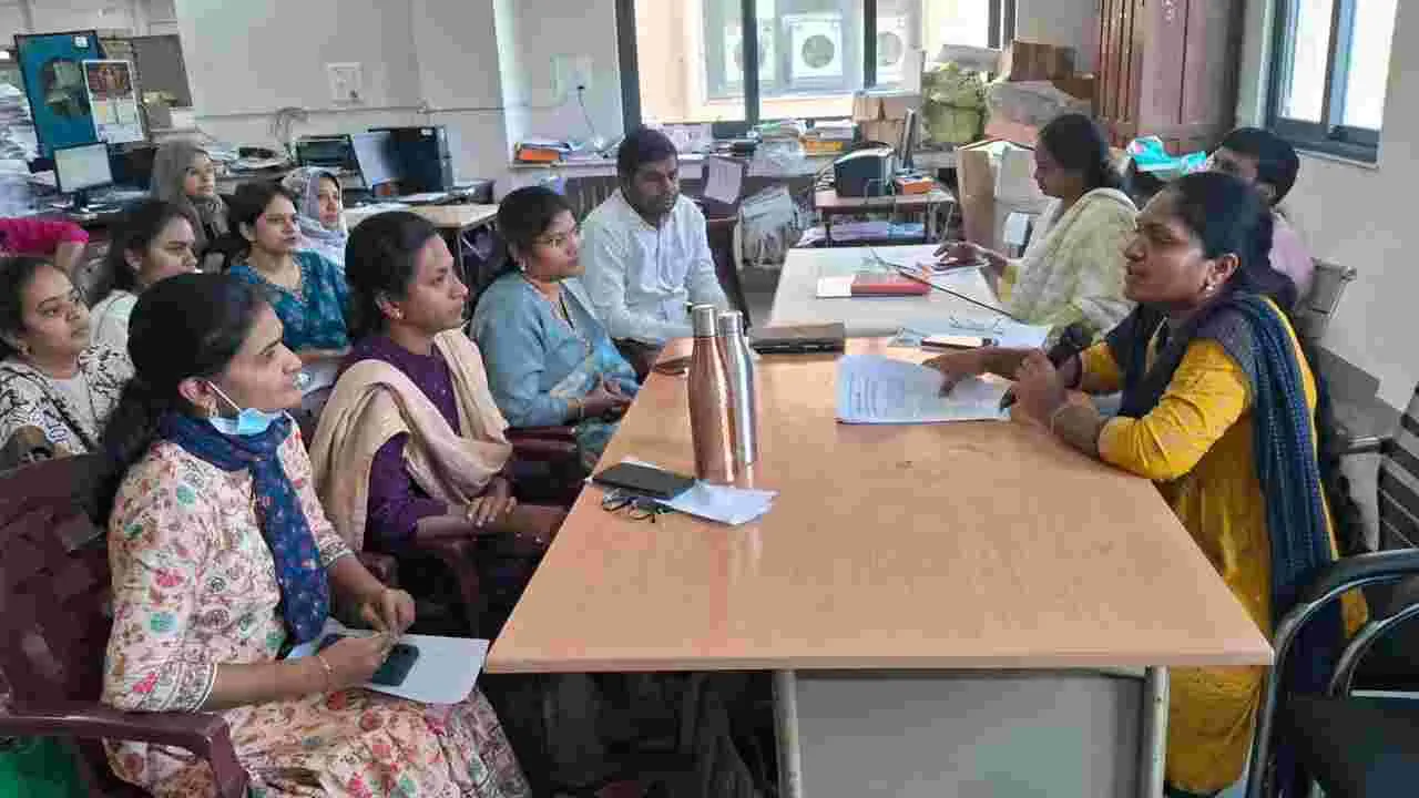 సిరిసిల్ల టౌన్, ఫిబ్రవరి 28 (ఆంధ్రజ్యోతి) : జిల్లా పరిధిలోని ప్రైవేటు ఆసుపత్రులు ప్రభుత్వ నిబంధనలను ఉల్లంఘిస్తే ఆసుపత్రులను సీజ్ చేసి చట్టపరమైన చర్యలు తీసుకుంటామని జిల్లా వైద్య ఆరోగ్య శాఖ అధి కారి డాక్టర్ రజిత అన్నారు. శనివారం జిల్లాలోని ప్రైవేటు ఆసుపత్రులను జిల్లా వైద్య ఆరోగ్య శాఖ ఆధ్వర్యంలో ఆకస్మిక తనిఖీలు నిర్వహించారు. అనంతరం జిల్లా కేంద్రంలోని డీఎంహెచ్వో కార్యాలయంలో జిల్లాలోని వివిధ మండలాల వైద్యాధికారులతో సమావేశం నిర్వహించారు. మార్చి 4 నుంచి జూన్ 9వరకు నాలుగు దశలో వందరోజుల హెల్త్ మిషన్ ఆరోగ్య శిబిరాలపై సమీక్షించారు. అనంతరం హెల్త్ మిషన్ ఆరోగ్య శిబిరంలో 30 సంవత్సరాలు పైబడిన మహిళలకు 60 సంవత్సరాలు పైబడిన వృద్ధులకు నిర్వహించే అసంక్రమిత వ్యాధులు, రక్తపోటు, మధుమోహం, గర్భాశయ, నోటి, రొమ్ము క్యాన్సర్, క్షయ వ్యాధి నివారణపై గర్భిణులు, పిల్లల తల్లుల కు ప్రత్యేక వైద్య శిబిరాలను నిర్వహిస్తున్నట్లు జిల్లా వైద్య ఆరోగ్య శాఖ అధికారి రజిత వివరించారు. అనంతరం మండల వైద్య అధికారులకు ఒక్క రోజు శిక్షణ తరగతులు నిర్వహించారు. ఈ కార్యక్రమంలో ప్రోగ్రాం ఆఫీసర్లు వైద్యులు సంపత్, రామకృష్ణ, అనిత, నహీమా, వివిధ మండలా ల వైద్య అధికారులు, సిబ్బంది పాల్గొన్నారు.