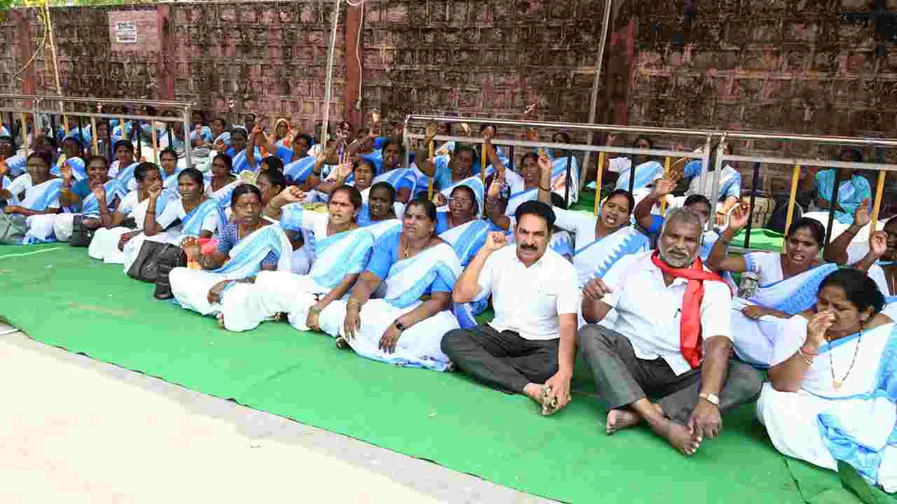 సుభాష్నగర్, మార్చి 16 (ఆంధ్రజ్యోతి): రాష్ట్ర ప్రభుత్వం బడ్జెట్ సమావేశాల్లో ఆశా వర్కర్లకు 18 వేల రూపాయల ఫిక్స్డ్ వేతనం ఇవ్వాలని సీఐటీయూ జిల్లా కార్యదర్శి గీట్ల ముకుందరెడ్డి డిమాండ్ చేశారు. తమ సమస్యలు పరిష్కరించాలని కోరుతూ కలెక్టరేట్ ఎదుట ఆశ వర్కర్లు 48 గంటల ధర్నా సోమవారం ప్రారంభించారు. ఈ సందర్భంగా గీట్ల ముకుందరెడ్డి మాట్లాడుతూ మహిళలు తమ సమస్యల పరిష్కారానికి రాత్రిపూట కూడా నిరసన వ్యక్తం చేసే పరిస్థితి వచ్చిందని ఆవేదన వ్యక్తం చేశారు. ఆశా వర్కర్ల సమస్యలు పరిష్కరించాలని డిమాండ్ చేశారు. అనంతరం ఆశా వర్కర్స్ యూనియన్ జిల్లా ప్రధానకార్యదర్శి మారెళ్ళ శ్రీలత మాట్లాడుతూ కాంగ్రెస్ పార్టీ అధికారంలోకి వచ్చిన తర్వాత ఎన్నికల హామీుని అమలు చేయకుండా మోసం చేసిందని విమర్శించారు. కార్యక్రమంలో సీఐటీయూ జిల్లా అధ్యక్షుడు శ్రీనివాస్, ఉపాధ్యక్షుడు ఎడ్ల రమేశ్, ఆశ వర్కర్స్ యూనియన్ జిల్లా అధ్యక్షుడు కాల్వ సారిక, ఉపాధ్యక్షులు పద్మ, రజిత, సరిత, లత, జిల్లా సహాయ కార్యదర్శులు సుమలత, శ్యామల, సరోజన, లావణ్య, సుమ పాల్గొన్నారు.