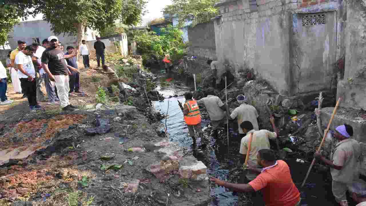 కోల్సిటీ, ఏప్రిల్ 6(ఆంధ్రజ్యోతి): రామగుండం నగరపాలక సంస్థ పరిధి లోని ప్రధాన నాలాలపై గోడలు నిర్మించవద్దని రామగుండం నగర మేయ ర్ మహంకాళి స్వామి ప్రజలను కోరారు. కార్పొరేషన్ 52వ డివిజన్లో డిప్యూటీ మేయర్ పాతపెల్లి ఎల్లయ్య, కార్పొరేటర్ చిదురాల నాగరాజుతో కలిసి సోమవారం డివిజన్ బాట నిర్వహించారు. కళ్యాణ్నగర్, కాకతీయ నగర్లలో పూడిక తీత వీలుకాకుండా నాలాలపైనే ప్రహరీలు నిర్మించారని, దీంతో నాలాల్లోకి యంత్రాలు, పారిశుధ్య సిబ్బంది వెళ్లలేని పరిస్థితి ఉంద న్నారు. సోమవారం ఒక ప్రహరీని తొలగించి యంత్రాలను నాలాలోకి దిం చారు. కాకతీయనగర్ వరకు పూడిక తొలగించామని, సుమారు రూ.10 లక్ష ల విలువైన కార్పొరేషన్ యంత్రాలు, సిబ్బందితో చేయించామన్నారు. వివి ధ డివిజన్లలో ఇసుక, కంకర, ఇటుకలను రోడ్లపైనే పెడుతున్నారని, జరిమానా విధిస్తామన్నారు. నగరాన్ని సుందరంగా తీర్చిదిద్దేందుకు ఎమ్మె ల్యే రాజ్ఠాకూర్ చేస్తున్న ప్రయత్నానికి ప్రతి ఒక్కరూ సహకరించాలన్నారు. డిప్యూటీ కమిషనర్ నాయిని వెంకటస్వామి, ఏఈ జమీల్, టీపీఎస్ నవీన్, సూపరింటెండెంట్ పబ్బాల శ్రీనివాస్, శానిటరీ ఇన్స్పెక్టర్ సంపత్, సూపర్వైజర్ దయానంద్ పాల్గొన్నారు.
