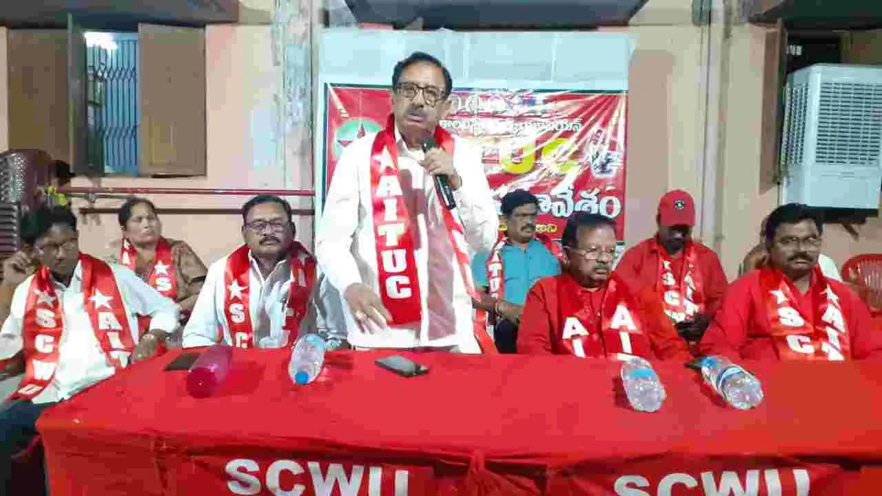 గోదావరిఖని, ఏప్రిల్ 30(ఆంధ్రజ్యోతి): కేంద్ర ప్రభుత్వం కార్పొరేట్ శక్తులకు మేలు చేసి, కార్మికులకు నష్టం కల్గించే విధంగా ఏప్రిల్లో అమలులోకి తీసుకువస్తున్న నాలుగు లేబర్ కోడ్ల రద్దు కోసం మేడే స్ఫూర్తితో ఉద్యమాలను నిర్వహిస్తామని ఏఐటీయూసీ రాష్ట్ర అధ్యక్షులు ఎండీ యూసూఫ్ అన్నారు. బుధవారం రాత్రి గోదావరిఖని భాస్కర్ రావుభవన్లో ఆర్జీ-1 బ్రాంచి కార్యదర్శి రంగు శ్రీను అధ్యక్షతన జరిగిన యూనియన్ జనరల్ బాడీ సమావేశంలో సింగరేణి కాలరీస్ వర్కర్స్ యూనియన్(ఏఐటీయూసీ) అధ్యక్షులు వాసిరెడ్డి సీతారామయ్య, ప్రధాన కార్యదర్శి కొరిమి రాజ్కుమార్లతో కలిసి ఆయన మాట్లాడుతూ కేంద్రంలోని బీజేపీ ప్రభుత్వం ప్రవేశపెట్టిన నాలుగు లేబర్ కోడ్ల అమలు జరిగితే దాని వల్ల కలిగే కష్టనష్టాలను వివరించారు. ముఖ్యంగా పని గంటలు పెరుగుతాయని, జీతాల పెంపు యాజమాన్యం దయా దాక్షిణ్యాలపై ఆధారపడి ఉంటుందని, ఉద్యోగ భద్రత ఉండదని ఆయన అన్నారు. లేబర్ కోడ్లను రద్దు చేయాలని డిమాండ్ చేస్తూ మేడే ఉత్సవాల్లో ప్రతిన బూనాలని ఆయన కార్మికులకు పిలుపు నిచ్చారు. మెడికల్ బోర్డు పునరుద్ధరణ, మారుపేర్ల అంశం కార్మికులకు ప్రమోషన్ సహా సింగరేణి కార్మికుల పెండింగ్ సమస్యలను మే మొదటి వారంలోగా పరిష్కరించాలని, రాష్ట్ర ప్రభుత్వాన్ని, సింగరేణి యాజమాన్యాన్ని డిమాండ్ చేశారు. లేకపోతే అన్ని కార్మిక సంఘాలను కలుపుకొని రెండో వారంలో సమ్మెకు పిలుపునిస్తామని వారు హెచ్చరించారు. ఈ సమావేశంలో ఏఐటీయూసీ, సీపీఐ నాయకులు మడ్డి ఎల్లాగౌడ్, కవ్వంపల్లి స్వామి, గౌతం గోవర్ధన్, గోసిక మోహన్, కే కనకరాజ్, మాదన మహేష్, సంకె అశోక్, బోగ సతీష్ బాబు, పీ విజయ లక్ష్మి, ఎంఏ గౌస్ పాల్గొన్నారు.