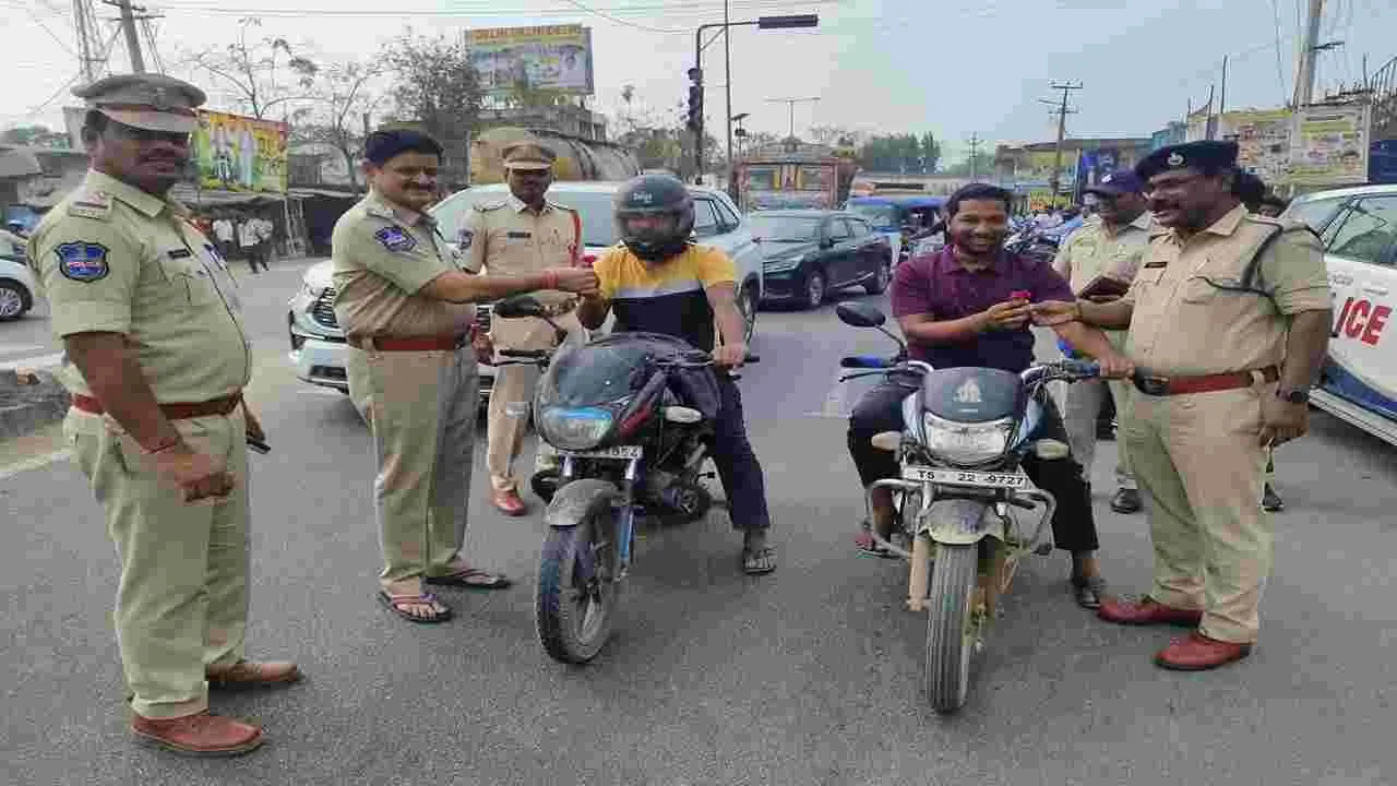 సుల్తానాబాద్, ఫిబ్రవరి 25 (ఆంధ్రజ్యోతి): రహదారి నియమ నిబంధనలు పాటిస్తూ వాహనాలు నడపాలని పెద్దపల్లి డీసీపీ రాం రెడ్డి అన్నారు. పట్టణంలో బుధవారం రోడ్డు భద్రతా వారోత్సవాలను నిర్వహించారు. ఏసీపీ కృష్ణతో కలిసి రాజీవ్ రహదారిపై వాహన చోద కులకు రోడ్డు భద్రతపై అవగాహన కల్పించారు. రోడ్డు ప్రమాదాల నివారణలో భాగంగా రాష్ట్ర ప్రభుత్వం ఆరైవ్-అలైవ్ కార్యక్రమాన్ని నిర్వహిస్తుందన్నారు. సీటు బెల్టు ధరించి కారు నడుపుతున్న వారికి పుష్పాలు అందించి అభినందించారు. హెల్మెట్లు లేకుండా ద్విచక్ర వాహనాలు నడుపుతున్న వారికి కౌన్సెలింగ్ ఇచ్చి పుష్పాలు అందిం చారు. హెల్మెట్లు ధరించి వాహనం నడుపుతూ ప్రమాదం జరిగితే సంఘటనల్లో ప్రాణాలను కాపాడుకోవచ్చన్నారు. సుల్తానాబాద్, పెద్దపల్లి సీఐలు సుబ్బారెడ్డి, చంద్రకుమార్ ఎస్ఐలు పాల్గొన్నారు.