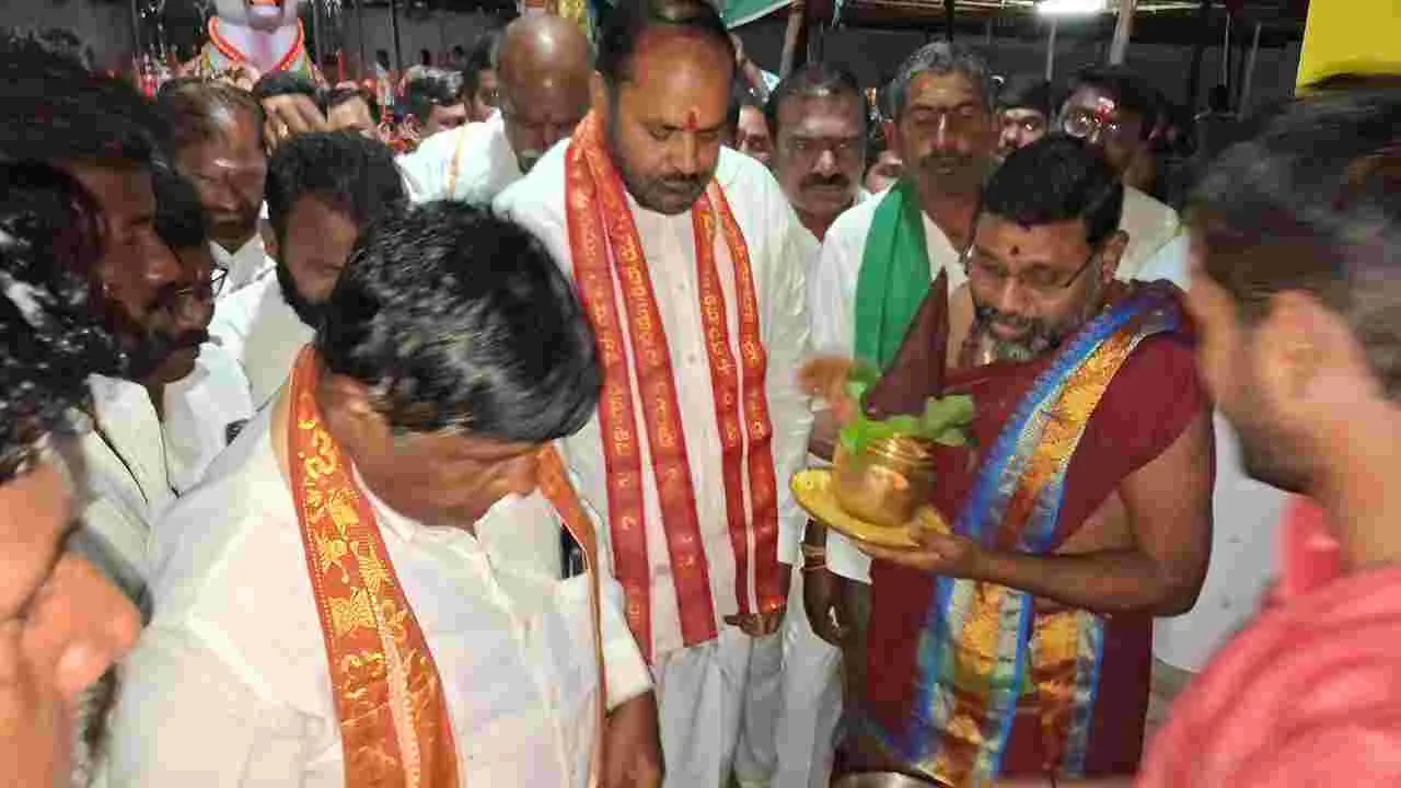 ఓదెల, మార్చి 19 (ఆంధ్రజ్యోతి): ఓదెల మల్లికార్జునస్వామి ఆలయంలో గురువారం ప్రభుత్వ విప్ చింతకుంట విజయరమణరావు సెంట్రల్ లైటింగ్ సిస్టంను ప్రారంభించారు. రూ.12 కోట్లతో నిర్మించిన ఓదెల, పెగడపల్లి ఫోర్లేన్లో రోడ్డులో భాగంగా సెంట్రల్ లైటింగ్ సిస్టంను ఏర్పాటు చేస్తానని ఇచ్చిన హామీని నెరవేర్చారు. ప్రభుత్వ విప్గా నియమితులైనట్లు ఆలయ సమీపంలోనే సమాచారం తెలుసుకున్న విజయరమణరావు హర్షం వ్యక్తం చేస్తూ పూజలు నిర్వహించారు. అంతకుముందు ప్రధాన అర్చకులతోపాటు చైర్మన్ చీకట్ల మొండయ్య, ఈవో సదయ్య ధర్మకర్తలు, అర్చకులంతా పూర్ణకుంభంతో స్వాగతం పలికారు. అనంతరం ఆలయ కమిటీ చైర్మన్ చీకట్ల మొండయ్య ఆధ్వర్యంలో ప్రభుత్వ విప్గా ప్రకటించినందుకు సన్మానించారు. పార్టీ మండల అధ్యక్షుడు మూల ప్రేమ్సాగర్ రెడ్డి, సర్పంచ్ కనికిరెడ్డి సతీష్, సర్పంచ్లు, మాజీ ఎంపీటీసీలు బోడకుంట శంకర్, పెర్క సంఘం అధ్యక్షుడు ఎర్ర శంకరయ్య, ఉప సర్పంచ్ల ఫోరం మండల అధ్యక్షుడు రెడ్డి రజనీకాంత్, నాయకులు చొప్పరి రాజయ్య, బోడకుంట చిన్నస్వామితో పాటు మాజీ సర్పంచ్ ఆకుల మహేందర్, శ్రీనివాస్లు పాల్గొన్నారు.