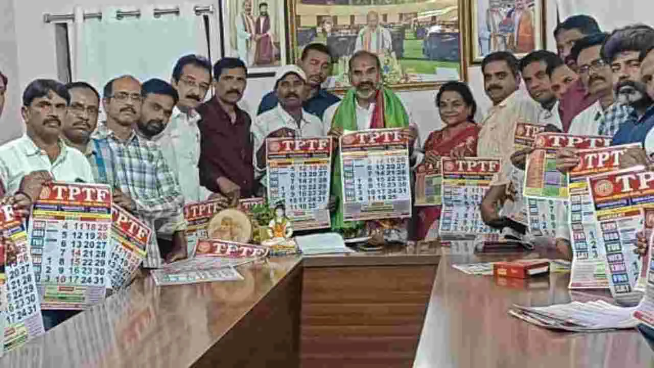 సిరిసిల్ల టౌన్, జనవరి 18 (ఆంధ్రజ్యోతి) : రాష్ట్రంలోని ఉద్యో గులు అందరికీ త్వరలో హెల్త్ కార్డులు జారీ చే స్తామని ప్రభుత్వ విప్ ఆది శ్రీనివాస్ అన్నారు. ఆదివారం వేములవాడలో విప్ను టీపీటీఎఫ్ నాయకులు మర్యాద పూర్వకంగా కలిసి నూతన సంవత్సరం సంక్రాంతి శుభాకాంక్షలు తెలిపి తెలంగాణ ప్రోగ్రెసివ్ టీచర్స్ ఫెడరేషన్-2026 క్యాలెండర్ను ప్రభు త్వ విప్ ఆది శ్రీనివాస్ చేతుల మీదుగా అవిష్కరింప జేశారు. ఈ సంద ర్భంగా విప్ మాట్లాడారు. ఉద్యోగుల సంక్షేమం కోసం ప్రభుత్వం పట్టుబడి ఉందని ముఖ్యమంత్రి రేవంత్రెడ్డి అన్ని సమస్యల పరిష్కారం కోసం కృషి చేస్తున్నారని అన్నారు. టెట్ పరీక్ష గురించి కేంద్ర ప్రభుత్వంతో మాట్లాడి సీనియర్ ఉపాధ్యాయులకు పరీక్ష నుంచి మినహాయింపు చేయించడానికి కృషి చేస్తామని అన్నారు. ఈ కార్యక్రమంలో టీపీటీఎఫ్ జిల్లా అధ్యక్షుడు దుమాల రామానాథ్రెడ్డి, ప్రధాన కార్యదర్శి విక్కుర్తి అంజయ్య, ఉపాధ్య క్షులు పురం వాసుదేవరావు, మందాడి శ్రీనివాస్రెడ్డి, నూగూరి దేవేందర్, కేవి రజినీరాణి, కార్యదర్శులు మైలారం తిరుపతి, చకినాల రామచంద్రం, ఎడ్లకృష్ణ, చైతన్యరెడ్డి, బుస్స రాజేందర్, వివిధ మండలాల అధ్యక్షులు పాల్గొన్నారు.