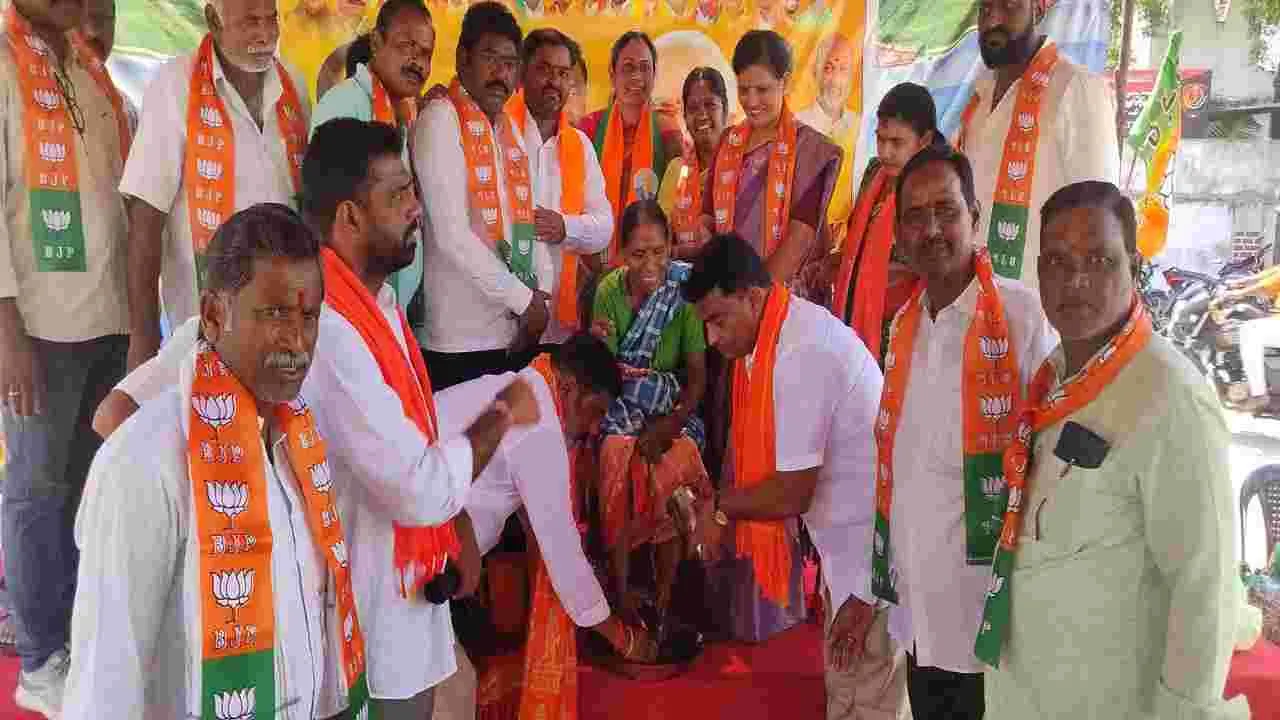 సుల్తానాబాద్, ఏప్రిల్ 15 (ఆంధ్రజ్యోతి): గ్రామాల్లో, పట్టణాల్లో పారిశుధ కార్మికులు చేస్తున్న సేవలు అమూల్యమైనవని ఆ సేవలకు వెల కట్టలే మని బీజేపీ పెద్దపల్లిజిల్లా అధ్యక్షుడు కర్రె సంజీవ రెడ్డి అన్నారు. సుల్తానాబాద్ పట్టణంలోని మున్సి పాలిటీ కార్యాలయం ఎదురుగా బుధవారం అంబే డ్కర్ జయంతి వారోత్సవాల్లో భాగంగా మున్సిపాలి టీలో పనిచేస్తున్న పారిశుధ్య కార్మికుల కాళ్లను బీజేపీ నేతలు కడిగి ఆ నీటిని నెత్తిన చల్లుకున్నారు. అనంతరం వారందరినీ ఘనంగా శాలువాలతో సన్మానించారు. టిఫిన్బాక్స్లను బహూకరించారు. నలభైమంది పారిశుధ్య కార్మికులను ఒక్కొక్కరిని వేదికపైన ఏర్పాటు చేసిన ఆసనంలో కూర్చుండబెట్టి పెద్దపల్లి బీజేపీ జిల్లా అధ్యక్షులు కర్రె సంజీవరెడ్డి ఆద్వర్యంలో పలువురు నేతలు వారి కాళ్లను కడిగి ఆ నీళ్లను నెత్తిన చల్లుకున్నారు. పార్టీ పిలుపుమేరకు ఈ కార్యక్రమం నిర్వహించామని నేతలు తెలిపారు. జిల్లాఅధ్యక్షుడు సంజీవరెడ్డి మాట్లా డుతూ దేశంలోకానీ ప్రపంచంలో కానీ పారిశుధ్య కార్మికుల పాదాలను కడిగిన వ్యక్తి ఎవరైనా ఉంటే అది మనదేశ ప్రధాని నరేంద్రమోదీ ఒక్కరేనని అన్నారు. కార్యక్రమ కన్వీనర్ ఎనగందలు ఎల్లయ్య, బీజేపీ జిల్లా ఉపాధ్యక్షుడు మహేందర్, కాసగోని నిర్మల, మన్కీబాత్ కన్వీనర్ మిట్టపల్లి ప్రవీణ్కుమార్, మాజీఎంపీపీ రేణుకదేవి, పుచ్చ కాయల హన్మాంతరెడ్డి, కోట నాగేశ్వర్, లంక శంకర్, బండారి లత, ఎర్రం సంతోష్రెడ్డి, శ్రీనివాస్, ఆగండ్ల గట్ట య్య, మాటూరి వెంకటస్వామి, గోస్కుల రవి, కొము రయ్య, దాసరి చందు పాల్గొన్నారు.