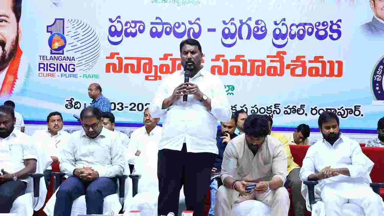 తెలంగాణ ప్రభుత్వం చేపట్టిన 99 రోజుల ప్రజా పాలన ప్రగతి ప్రణాళికల కార్యక్రమంలో ప్రతీ ఒక్కరు భాగస్వాములు కావాలని రాష్ట్ర ఎస్సీ, ఎస్టీ సంక్షేమ శాఖ మంత్రి అడ్లూరి లక్ష్మణ్కుమార్ పిలుపునిచ్చారు. రంగాపూర్లోని రాధాకృష్ణ ఏసీ కన్వెన్షన్ హాల్లో జిల్లా ప్రజాపాలన ప్రగతి ప్రణాళిక సన్నాహక సమావేశంపై ప్రజాప్రతినిధులకు శిక్షణ కార్యక్రమం నిర్వహించారు.
