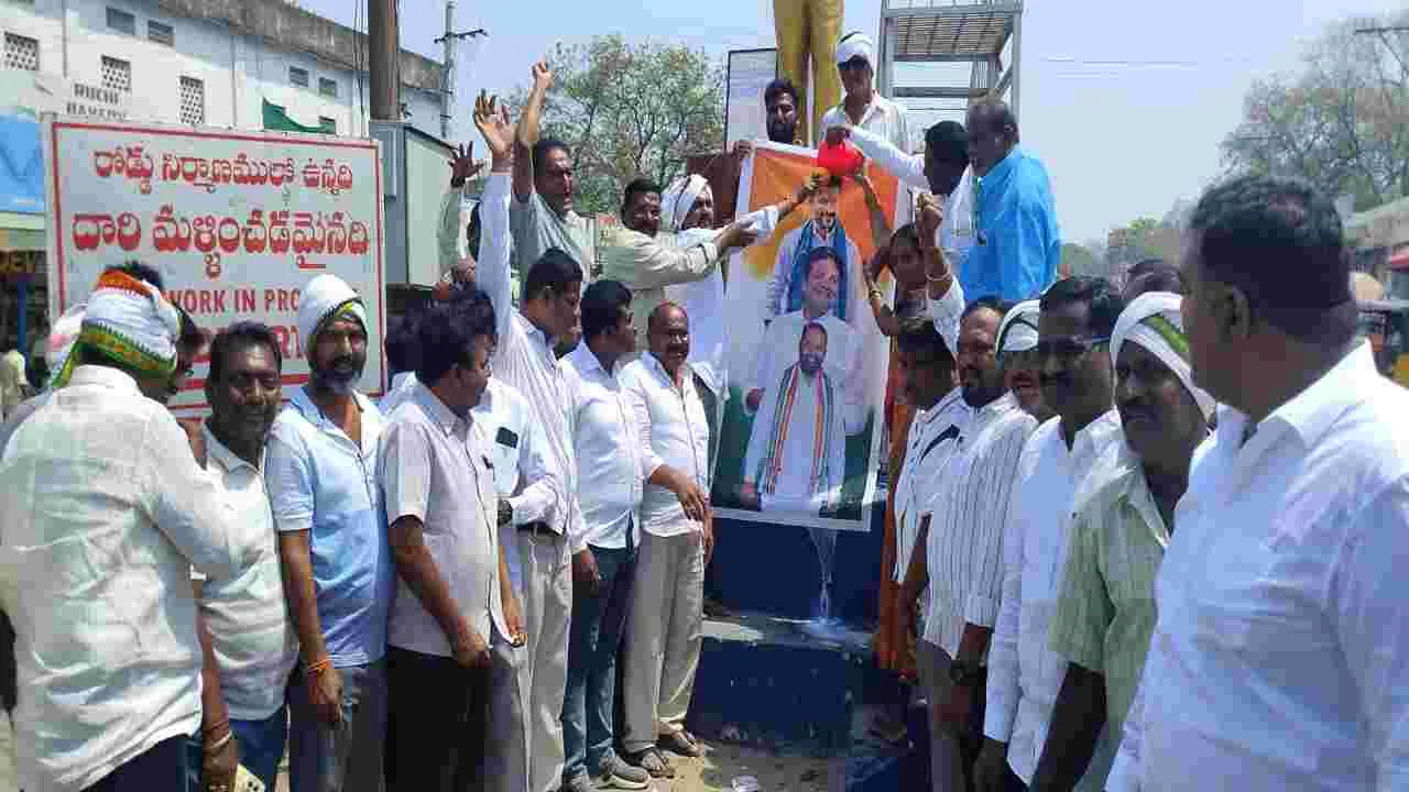 కాంగ్రెస్ నాయకుల చిత్రపటాలకు క్షీరాభిషేకం