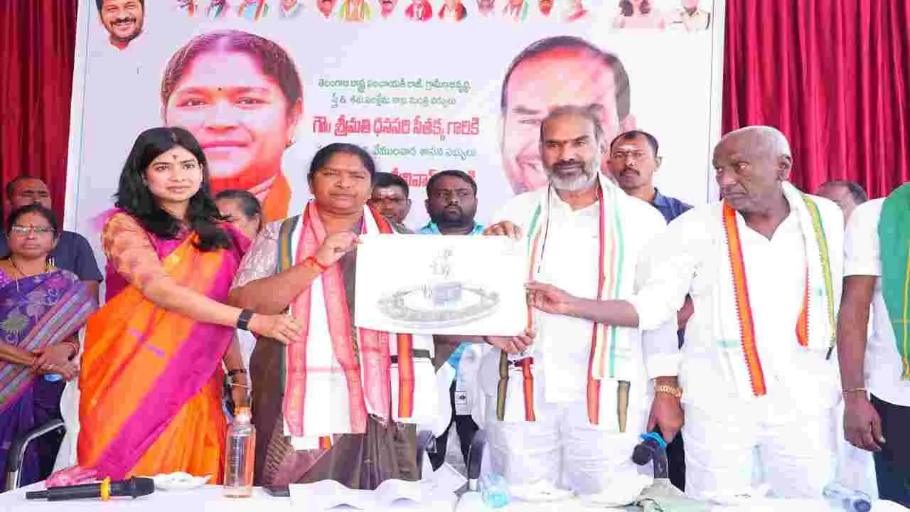 వేములవాడ, జనవరి 16 (ఆంధ్రజ్యోతి): రాజన్న ఆలయానికి వస్తే పదవులు ఊడిపోతాయనే దుష్ప్రచా రాన్ని సీఎం రేవంత్రెడ్డి పటాపంచలు చేశారని పంచా యతీ రాజ్, గ్రామీణాభివృద్ది శాఖ, గ్రామీణ నీటి పారు దల, మహిళా, శిశు సంక్షేమశాఖ మంత్రి సీతక్క అన్నా రు. వేములవాడ పట్టణంలోని తిప్పాపూర్ ఆర్టీసీ బస్టాం డు ఎదురుగా జంక్షన్ సుందరీకరణ పనులకు ప్రభుత్వ విప్ ఆది శ్రీనివాస్తో కలిసి శంకుస్థాపన చేశారు. ఈ కార్యక్రమానికి ముఖ్యఅతిథిగా హాజరైన సీతక్క మాట్లా డుతూ పేద ప్రజల దేవుళ్లు మేడారం సమ్మక్క, సరాక్క, వేములవాడ రాజన్న ఆలయాలను ఏకకాలంలో సీఎం రేవంత్రెడ్డి అభివృద్ధి చేస్తున్నారని, ప్రజల గుండెల్లో సీఎం రేవంత్రెడ్డి కలకాలం నిలిచిపోతారని అన్నారు. సమ్మక్క, సారక్క జాతరకు ముందు వేములవాడ రాజ న్నను దర్శించుకోవడం తాత, ముత్తాతల నుంచి వస్తు న్న ఆనవాయితీ అని చెప్పారు. తాత,ముత్తాతల విశ్వా సాలను గౌరవించి, మన సంస్కృతి, సంప్రదాయాలను భావితరాలకు అందించాలని సూచించారు. ఒకప్పుడు పేద ప్రజలు కాలినడకన సమ్మక్క, సారక్క, వేముల వాడ రాజన్నను దర్శించుకునే వారు అని గుర్తు చేశారు. అట్టడుగు ప్రజలకు గౌరవాన్ని ఇస్తూ దేవాలయాల అభివృద్ధికి సీఎం రేవంత్రెడ్డి ముందుకు సాగుతున్నా డని సూచించారు. సమ్మక్క, సారక్క ఆలయ అభివృ ద్ధిలో అడుగడుగునా తమ సంస్కృతి, సంప్రదాయాలు, పూర్వ వైభవం కళ్లకు కట్టేలా శిలాలపై చెక్కిస్తున్నామని అన్నారు. రాజన్న ఆలయ అభివృద్ధిలో భాగంగా ఆలయ చరిత్రను, పూర్వపు వైభవనాన్ని చిత్రికరించి పాత ఆన వాళ్లను భవిష్యత్ తరాలకు అందించేందుకు కృషి చేయాలని ప్రభుత్వ విప్ ఆది శ్రీనివాస్ను కోరారు. రెండు సంవత్సరాలకు ఒకసారి వచ్చే మేడారం మహా ఘట్టానికి ప్రజలు పెద్ద ఎత్తున తరలిరావాలని, రెండు రోజుల్లో క్యాబినేట్ మీటింగ్ మేడారంలో జరగనుందని, మంత్రులు అందరు సమ్మక్క, సారక్క సన్నిధికి తరలిరా నున్నారని చెప్పారు. రాజన్న ఆలయాభివృద్ధి చెందిన వెంటనే వేములవాడలో సీఎం రేవంత్రెడ్డితో కలిసి క్యాబినేట్ మీటింగ్ ఏర్పాటు చేసేందుకు ప్రభుత్వ విప్ ఆది శ్రీనివాస్తో కలిసి కృషి చేస్తానని తెలిపారు. కూడ ళ్ల సుందరీకరణ ఆధ్యాత్మికతను పెంచేలా ఉంటుందని, దక్షిణకాశీగా ప్రసిద్ది చెందిన వేములవాడ ప్రధాన కూడ లిని నందిపై శూలంతో వస్తున్న శివుడి ప్రతిమతో జంక్ష న్ ఏర్పాటు చేయడం అభినందనీయమని అన్నారు. రాజన్న ఆలయానికి వచ్చే భక్తులకు మరింత ఆహ్లాదం కలిగేలా జంక్షన్లు దోహదపడుతాయని తెలిపారు.
