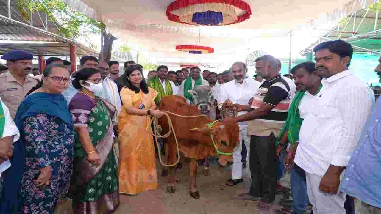 వేములవాడ రూరల్, ఏప్రిల్ 7(ఆంధ్రజ్యోతి): భక్తుల విశ్వాసానికి ప్రతీక కోడె మొక్కు చెల్లింపు అని ప్రభుత్వ విప్, వేములవాడ ఎమ్మెల్యే ఆది శ్రీనివాస్ అన్నారు. వేములవాడ పట్టణం తిప్పాపురంలోని రాజరాజశ్వరస్వా మి గోశాలలో మంగళవారం రైతులకు అందజేసిన కోడెల పంపిణీ కార్యక్రమంలో ఎమ్మెల్యే ఆది శ్రీనివాస్ కలెక్టర్ గరిమ అగర్వాల్తో కలిసి మంగళవారం పాల్గొన్నారు. ఈ సందర్బంగా ఆయన మాట్లాడుతూ దేశంలో ఎక్కడాలేని విధంగా వేములవాడ రాజరాజేశ్వర స్వామివారి ఆలయం లో కోడెల మొక్కును భక్తులు స్వామివారికి చెల్లిస్తార న్నారు. భక్తుల విశ్వాసానికి అనుగుణంగా కోడెల సంరక్ష ణకు రాష్ట్ర ప్రభుత్వం ముఖ్యమంత్రి రేవంత్రెడ్డి ఆధ్వ ర్యంలో ప్రత్యేక చర్యలు తీసుకుంటోందన్నారు. రైతులకు ఉచితంగా కోడెల పంపిణీ చేస్తున్నామని, కోడెల పంపిణీ పారదర్శ కంగా జరుగుతుందన్నారు. కోడెలను పక్కదారి పట్టించి వ్యవసాయ పనుల నిమిత్తం కాకుండా ఇతర అవసరాలకు ఉపయోగిస్తే కఠిన చర్యలు తీసుకుంటామని హెచ్చరించారు. వేములవాడ పరిధిలో అధు నాతన సౌకర్యాలతో సవిశాల స్థలంలో గోశాల నిర్మాణానికి రాష్ట్ర కేబినేట్ ఆమోదం తెలిపిందన్నారు. త్వరలోనే గోశాల నిర్మాణ పనులు ప్రారంభిస్తామన్నారు. 150కోట్ల రూపాయలతో వేములవాడ రాజరాజే శ్వరస్వామి దేవస్థాన అభివృద్ధి పనులు శరవేగంగా జరుగుతున్నాయ న్నారు. అనంతరం కలెక్టర్ గరిమ అగర్వాల్ మాట్లాడుతూ అర్హులైన రైతులకు మాత్రమే కోడెలను అందజేయబడుతాయన్నారు. రైతులు ఆన్లైన్లో సమర్పించిన దరఖాస్తులను వ్యవసాయ, పశు సంవర్ధక శాఖ, రెవెన్యూ, దేవాదాయ శాఖ ఆధ్వర్యంలో తనిఖీ చేసిన తర్వాతనే కోడెలు అందజేయబడుతాయన్నారు. కోడెలను తీసుకెళ్లే రైతులు వాటి సంరక్షణ బాధ్యతను సక్రమంగా పక్కాగా చూసుకోవాలన్నారు. ఈ కార్యక్రమంలో వేములవాడ మున్సిపల్ చైర్మన్ పుల్కం రాజు, మార్కెట్ కమిటీ చైర్మన్ రొండి రాజు, వైస్చైర్మన్ రాకేష్, ఆర్డీవో రాధాబాయి, ఆలయ ఇన్చార్జి ఈవో అంజనారెడ్డి, డీఎస్పీ శ్రీనివాసులు, జిల్లా పశుసంవర్ధక శాఖ అధికారి రవీందర్రెడ్డి, జిల్లా వ్యవసాయ శాఖ అధికారి అఫ్జల్ బేగం, తహసీల్దార్ జయంత్ కుమార్, తదిత రులు పాల్గొన్నారు.