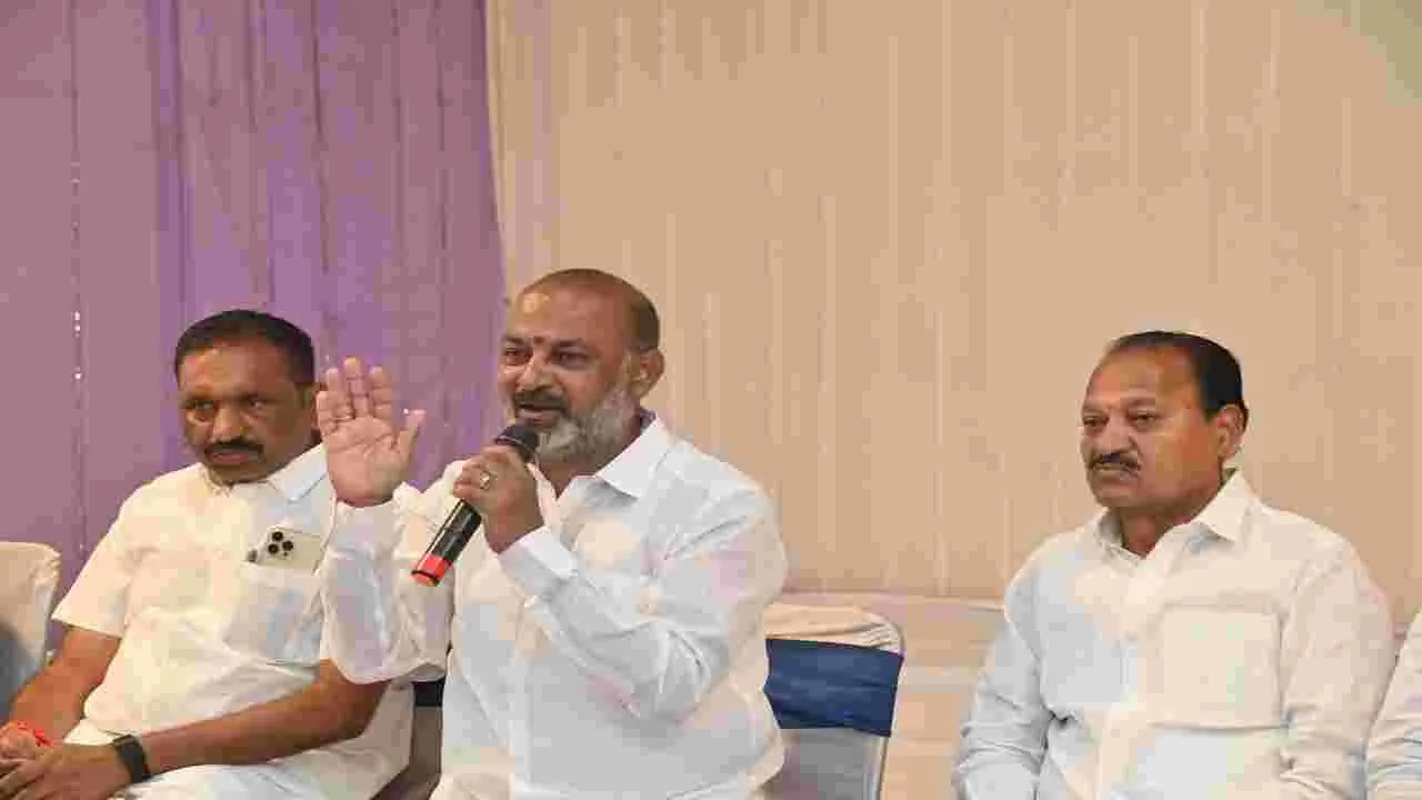భగత్నగర్, ఫిబ్రవరి 12(ఆంధ్రజ్యోతి): కరీంనగర్ కార్పొరేషన్లో మెజారిటీ స్థానాలు భారతీయ జనతా పార్టీ సాధించబోతుందని కేంద్ర హోం శాఖ సహాయ మంత్రి బండి సంజయ్కుమార్ ధీమా వ్యక్తం చేశారు. కరీంనగర్లో బీజేపీ కార్పొరేటర్ అభ్యర్థులు, కౌంటింగ్ ఏజెంట్లతో గురువారం సమావేశం నిర్వహించారు. ఈ సందర్భంగా ఆయన మాట్లాడుతూ దేశమంతా కరీంనగర్ కార్పొరేషన్ ఫలితాల వైపు చూస్తున్నదన్నారు. బీజేపీకి అనుకూలంగా ఫలితాలు రాబోతున్నాయని, కరీంనగర్ కార్పొరేషన్ మేయర్ పీటాన్ని కైవసం చేసుకుని చరిత్ర సృష్టించబోతున్నామని తెలిపారు. కాంగ్రెస్ పార్టీలో కలవరం మొదలైందని, ప్రలోభాలకు గురి చేసి బీజేపీ కార్పోరేటర్లను గుంజాలని చూస్తున్నారన్నారు. బీజేపీ కార్పొరేటర్ అభ్యర్థులు అప్రమత్తంగా ఉండాలని, కాంగ్రెస్ నేతలు ఫోన్లు చేస్తు స్కెచ్ వేస్తున్నారన్నారు. పార్టీని మోసం చేస్తే కన్నతల్లిని మోసం చేసినట్లే అన్నారు. అధికార పార్టీ ఆశలకు లోబడి ఎవరైనా కాంగ్రెస్లోకి వెళితే తీవ్రమైన పరిణామాలు ఉంటాయని, కార్యకర్తల ఆవేశాన్ని తట్టుకోవడం అసాధ్యమని హెచ్చరించారు. మాజీ మేయర్ సునీల్రావు కౌంటింగ్ ఏజెంట్లు, అభ్యర్థులకు పలు సూచనలు చేశారు. ప్రతి సీటు పార్టీకి ముఖ్యమనే విషయాన్ని గుర్తుంచుకుని ప్రతి క్షణం అప్రమత్తంగా ఉండాలన్నారు. కార్యక్రమంలో జిల్లా మాజీ అధ్యక్షుడు బాస సత్యనారాయణరావు, మాజీ మేయర్ సునీల్రావు, మాజీ డిప్యూటీ మేయర్ గుగ్గిళ్ల రమేష్, వాసాల రమేష్, సాయిని మల్లేశం, గుజ్జ శ్రీనివాస్ పాల్గొన్నారు.