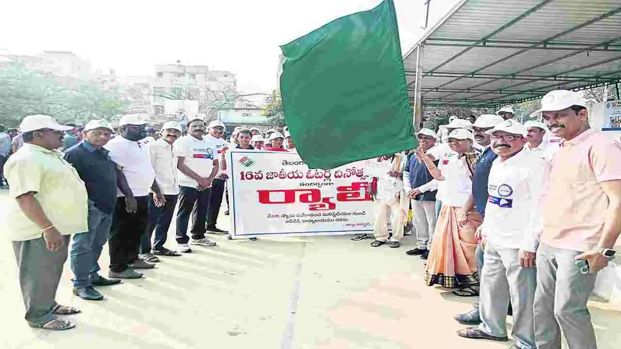 జగిత్యాల అగ్రికల్చర్, జనవరి 25(ఆంధ్రజ్యోతి): ప్రజాస్వామ్యంలో ఓటు హక్కు కీలకమని అదనపు కలెక్టర్లు బీఎస్ లత, రాజాగౌడ్లు అన్నారు. పట్టణంలోని స్థానిక మినీ స్టేడియంలో 16వ జాతీయ ఓటర్ల దినోత్సవాన్ని పురస్కరించుకొని ఏర్పాటు చేసిన అవగాహన ర్యాలీకి వారు ముఖ్య అతిథులుగా హాజరై జెండా ఊపి ర్యాలీని ప్రారంభించారు. స్థానిక వివేకానంద స్టేడియం నుంచి స్థానిక ఆర్డీవో కార్యాలయం వరకు ర్యాలీ సాగింది. ఈ సందర్భంగా వారు మాట్లాడుతూ ఏటా జనవరి 25న జాతీయ ఓటర్ల దినోత్సవంగా నిర్వహిస్తుందని తెలిపారు. కార్యక్రమంలో కలెక్టరేట్ కార్యాలయ ఏవో హకీం, జిల్లా క్రీడల అధికారి రవికుమార్, ఆర్టీవో మధుసూధన్ గౌడ్, అర్బన్. రూరల్ మండల తహసీల్దార్లు రాంమోహన్రావు, వరంధన్, మెప్మా ఏవో శ్రీనివాస్ గౌడ్, ఎస్కేఎన్ఆర్ డిగ్రీ కళాశాల ప్రిన్సిపాల్ అశోక్, సామాజిక సేవకుడు రాజగోపాలాచారి, విద్యార్థులు, ఉద్యోగులు, యువత పాల్గొన్నారు. ఓటుహక్కును వినియోగించు కుంటున్న సీనియర్ సిటిజన్లను సత్కరించారు.