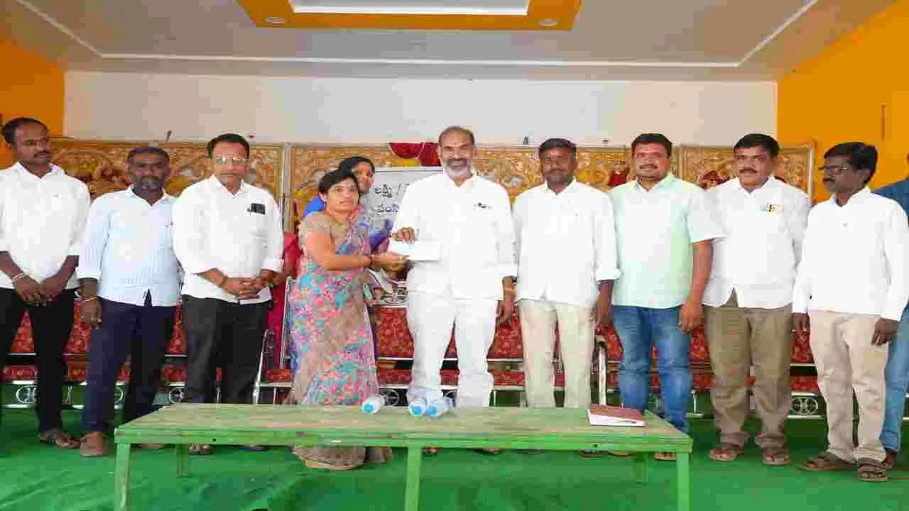 రుద్రంగి, ఏప్రిల్ 9 (ఆంధ్రజ్యోతి): పేదల సంక్షేమమే కాంగ్రెస్ ప్రభు త్వ ధ్యేయమాని ప్రభుత్వ విప్, వేములవాడ ఎమ్మెల్యే ఆది శ్రీనివాస్ అన్నారు. మండల కేంద్రంలో 50 మంది లబ్ధిదారులకు కల్యాణలక్ష్మి, షాదీ ముబారక్ చెక్కులు పంపిణీ చేశారు. ఈ సందర్భంగా ప్రభుత్వ విప్, వేములవాడ ఎమ్మెల్యే ఆది శ్రీనివాస్ మాట్లాడుతూ జిల్లాలోని యువత, విద్యార్థుల నైపుణ్య అభివృద్ధి, ఉపాధి పొందేందుకు శిక్షణ అందించే అడ్వా న్స్ టెక్నాలజీ సెంటర్ కోసం రూ.42 కోట్లు మంజూరు చేసిందని, టెండర్లు పూర్తి అయ్యాయని త్వరలోనే పనులు మొదలు పెడుతామని తెలిపారు. టాటా కంపెనీ సహకారం, భాగస్వామ్యంతో దీనిలో మొత్తం ఆరు కోర్సు లు అందుబాటులోకి వస్తాయని వివరించారు. మార్క్ఫెడ్ ఆధ్వర్యంలో గోదాముల నిర్మాణానికి ఎకరాల ఎనిమిది స్థలం కేటాయించామని, నిర్మా ణ పనులు త్వరలో ప్రారంభిస్తామని చెప్పారు. వేములవాడ నియోజకవ ర్గంలో రుద్రంగి రెండో అతి పెద్ద గ్రామమని తెలిపారు. విశాలమైన రోడ్లు, మురుగు కాలువలు నిర్మిస్తున్నామన్నారు. 132/33 సబ్ స్టేషన్ పనులను త్వరలోనే ప్రారంభిస్తామని, విద్యుత్ సమస్యలు లేకుండా చేస్తామని భరో సా ఇచ్చారు. రుద్రంగి నుంచి కుక్కలగండి తండాకు బిటీ రోడ్డు మంజూ రు కావడం జరిగిందని వివరించారు. ఈ కార్యక్రమంలో తహసీల్దార్ పుష్పలత, సర్పంచ్ గండి నారాయణ, గట్ల మీనయ్య, గడ్డం శ్రీనివాస్రెడ్డి, పుట్కపు మహిపాల్, ఆకుల గగన్, ఎర్రం ఆరవింద్, పూదరి మహిపాల్, గంధం మనోజ్, అంబటి శ్రీనివాస్, తర్రె లింగం, పూన్నురి శ్రీను, తదిత రులు పాల్గొన్నారు.