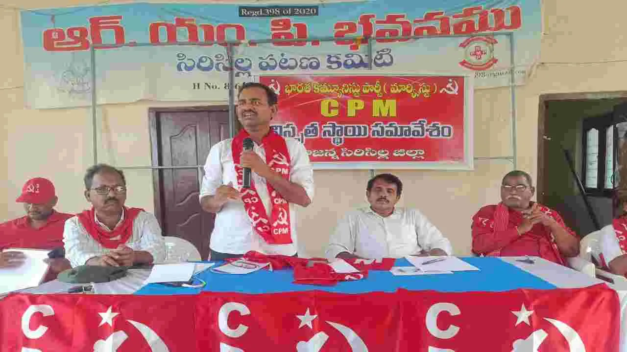 సిరిసిల్ల అర్బన్, మార్చి 26 (ఆంధ్రజ్యోతి) : ఇరాన్పై అమెరికా, ఇజ్రాయిల్ దేశాలు చేపట్టిన యుద్ధాన్ని ప్రజలు ఖండించాలంటూ ఈనెల 29న హైదరాబా ద్లోని చార్మినార్ నుంచి ఎగ్జిబిషన్ గ్రౌండ్స్ వరకు శాంతి ర్యాలీ నిర్వహించను న్నట్లు సీపీఎం రాష్ట్ర కమిటీ సభ్యుడు సైల్కాబ్బాబు తెలిపారు. సిరిసిల్ల జిల్లా కేంద్రంలోని ఆర్ఎంపీ భవనంలో గురువారం సీపీఎం జిల్లా కమిటి సమావేశం సీపీఎం పార్టీ జిల్లా కార్యదర్శి వర్గ సభ్యుడు ఎగుమంటి ఎల్లారెడ్డి అఽధ్యక్షతన జరిగింది, ఈ సమావేశానికి ముఖ్యఅతిదిగా హాజరైన రాష్ట్ర కమిటి సభ్యుడు సైల్కాబ్బాబు మాట్లాడుతూ భారత ప్రభుత్వం శాంతి కోసం కృషి చేయడానికి ఒత్తిడి తీసుకరావడానికి ప్రజలు కృషి చేయాలని కోరారు. అన్ని రాజకీయ పార్టీ లకు చెందిన నాయకులు యుద్ధవిరమణ జరగాలని మోదీ ప్రభుత్వాన్ని డిమాం డ్ చేయాలని కోరారు. అమెరికా సామ్రాజ్యవాదం భారత దేశానికి తీరనిద్రోహం చేస్తుందని, యువతరం దానికి వ్యతిరేకంగా పోరాడాలన్నారు. ఈ సమావేశంలో జిల్లా కార్యదర్శి మూషం రమేష్, కార్యదర్శివర్గ సభ్యులు ఎగమంటి ఎల్లారెడ్డి, విమల, కోడం రమణ, మల్లారపు అరుణ్కుమార్, జిల్లా కమిటీ సభ్యులు సూరం పద్మ, గురిజాల శ్రీధర్, అన్నల్దాస్ గణేష్, మిట్టపల్లి రాజమల్లు, ఎలిగేటి రాజశే ఖర్, గీస బిక్షపతి, మనోజ్, సురేష్, కమలాకర్, అడెపు రజిత, దాసరి రూప, వడ్ల లక్ష్మీ, సావనపల్లి రాములు, గుండు రమేష్, నర్సింహారెడ్డి, రామంచ అశోక్, శ్రీని వాస్, ప్రభాకర్, రాజెల్లయ్య, కిషన్, సుజాత, రమేష్, లక్ష్మీరాజం, పోచమల్లు తదితరులు పాల్గొన్నారు.