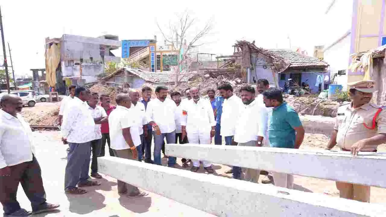 వేములవాడ, మార్చి 21 (ఆంధ్రజ్యోతి): వేములవాడ పట్టణాన్ని సర్వాంగ సుందరంగా తీర్చిదిద్దుతామని స్థానిక ఎమ్మెల్యే ప్రభుత్వ విప్ ఆది శ్రీనివాస్ అన్నారు. వేములవాడ పట్టణంలోని రాజన్న ఆలయం నుంచి బ్రిడ్జి వరకు చేపడుతున్న రోడ్డు విస్తరణ పనులు, విద్యుత్ స్తంభా ల ఏర్పాటును శనివారం స్థానిక నాయకులతో కలిసి పరిశీలించారు. ఈ సందర్భంగా ఆది శ్రీనివాస్ మాట్లాడుతూ వేములవాడ పట్టణ ప్రజల, రాజన్న భక్తుల 50యేళ్ల చిరకాల కోరిక రోడ్డు వెడల్పు పనులు జరగాలని అన్నారు. ప్రజల, భక్తుల ఆకాంక్ష మేరకు పనులు శరవేగంగా జరుగుతు న్నాయని తెలిపారు. రోడ్డు విస్తరణ పనుల నేపథ్యంలో రోడ్డు మద్యలో వున్న పాత విద్యుత్ స్తంభాలను తొలగించి అత్యాధునికమైన నూతన స్తంభాలను మంజూరు చేశామని అన్నారు. భవిష్యత్తులో విద్యుత్ లైన్ల నిర్వహణ సులభతరం కావడమే కాకుండా పట్టణ సుందరీకరణ పెరుగు తుందన్నారు. త్వరితగతిన రోడ్డు వెడల్పు పనులను పూర్తిచేస్తామని తెలి పారు. ఈ కార్యక్రమంలో కాంగ్రెస్ నాయకులు, కార్యకర్తలు ఉన్నారు.