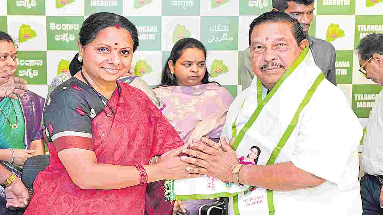 హైదరాబాద్, ఏప్రిల్ 19 (ఆంధ్రజ్యోతి): కొందరు నాయకులు బూర్జువా పార్టీలను వదిలేసి, తమ కొత్త పార్టీలో చేరుతున్నారని తెలంగాణ జాగృతి అధ్యక్షురాలు కవిత చెప్పారు. సిరిసిల్ల జిల్లా బీఆర్ఎస్ నాయకులు పలువురు జాగృతిలో చేరారన్నారు. అన్ని జిల్లాల నుంచి పార్టీల నాయకులతోపాటు ఉద్యమకారులు జాగృతిలో చేరుతున్నారని తెలిపారు. జాగృతి నుంచే బీఆర్ఎ్సలో చేరి రెండుసార్లు ఎమ్మెల్యే అయిన బోథ్ మాజీ ఎమ్మెల్యే రాథోడ్ బాపూరావు.. ప్రారంభానికి ముందే కొత్త పార్టీలో చేరారని అన్నారు. ఆదివారం బాపూరావు తన అనుచరులతో కలిసి తెలంగాణ జాగృతిలో చేరారు. అనంతరం కవిత మాట్లాడుతూ.. తెలంగాణ రాష్ట్ర సాధన కోసం పని చేసిన నాయకులంతా ఇప్పుడు తెలంగాణ అభివృద్ధి కోసం ఒక్కతాటిపైకి రావాలని పిలుపునిచ్చారు. 2007లో కుటుంబంతో సహా తాను బోథ్కు వెళ్లి అక్కడి ఆదివాసీలు, గిరిజనుల కోసం ప్రత్యేక వైద్య శిబిరాలు ఏర్పాటు చేయించానని గుర్తుచేసుకున్నారు. ఉమ్మడి ఆదిలాబాద్ జిల్లాలో తమ కొత్త పార్టీకి ఆదరణ ఉంటుందని అభిప్రాయపడ్డారు. ప్రజలకు సేవ చేసేందుకు అడ్డంకిగా ఉన్న బూర్జువా పార్టీలను వదిలేసి, కొత్త రాజకీయ శక్తిగా రాబోతున్న జాగృతిలో చేరాలని కవిత పిలుపునిచ్చారు. బీఆర్ఎస్ పార్టీలోకి మధ్యలో వచ్చిన వాళ్లు మంత్రులయ్యారని, సీనియర్లకు ప్రాధాన్యం కల్పించలేదని బాపూరావు అన్నారు. 2023లో ఎమ్మెల్యే టికెట్ ఇవ్వలేదని కాంగ్రెస్లో చేరితే అక్కడ కూడా తనకు తగిన ప్రాధాన్యం దక్కలేదని చెప్పారు. కవిత ఇచ్చిన ధైర్యంతోనే తాను ప్రభుత్వ ఉద్యోగానికి రాజీనామా చేసి రెండు సార్లు ఎమ్మెల్యే అయ్యానని తెలిపారు.