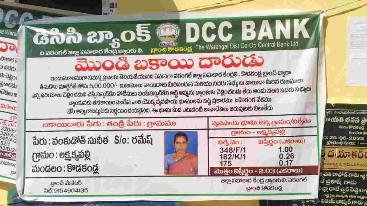 లోన్ తీర్చలేదంటూ భూమి వేలానికి వరంగల్ డీసీసీబీ నిర్ణయం