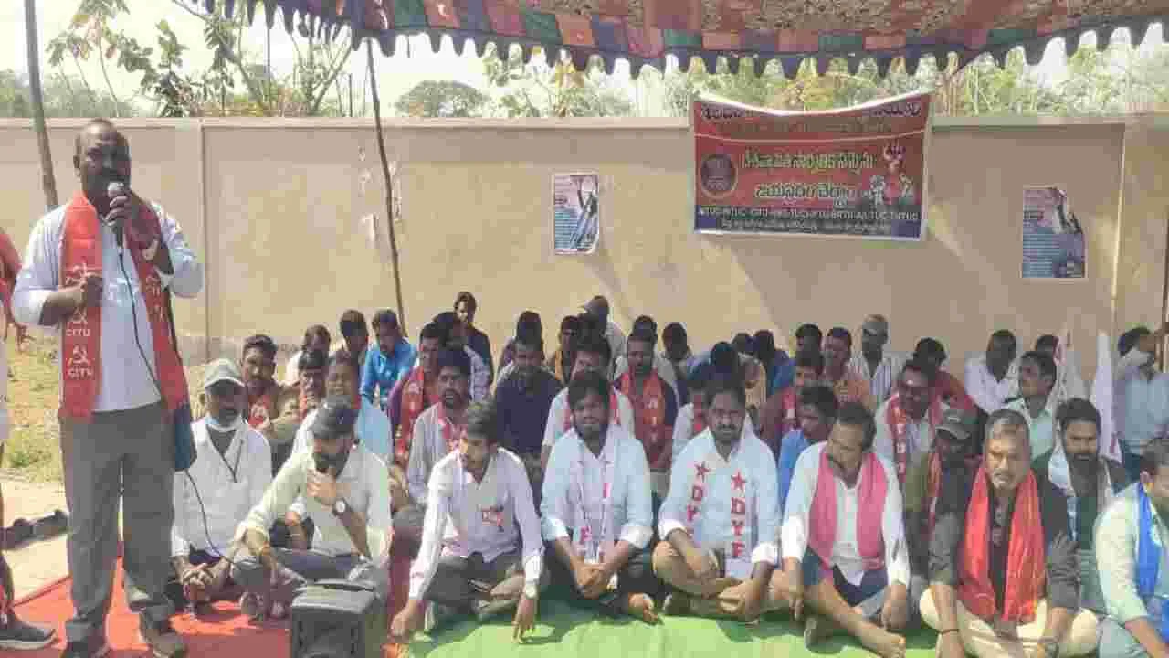 ఆసిఫాబాద్రూరల్, ఫిబ్రవరి 12 (ఆంధ్రజ్యోతి): కేంద్రం ఇటీవల తీసుకొచ్చిన నాలుగు లేబర్ కోడ్లను వెంటనే రద్దు చేయాలని దేశ వ్యాప్త సమ్మెలో భాగంగా గురువారం జిల్లా కేంద్రంలోని కలెక్టరేట్ ఎదుట సీఐటీయూ ఆధ్వర్యంలో ధర్నా చేపట్టారు. ఈ సందర్భంగా వారు మాట్లాడుతూ కేంద్ర ప్రభుత్వం కార్మికుల మీద యుద్దం మొదలు పెట్టిందని 2019 నుంచి ఈ యుద్దం కొనసాగుతుందని అన్నారు. 29 రకాల కార్మిక చట్టాలను బ్రిటీష్ కాలం నుంచి పోరాడి కార్మికులు సాధించుకున్న చట్టాలను యజమాన్యాలకు అనుకూలంగా మోడి ప్రభుత్వం రద్దు చేసి వాటి స్థానంలో నాలుగు లేబర్ కోడ్లను తీసుకు వచ్చిందని అన్నారు. వెంటనే వాటిని రద్దు చేయాలన్నారు. ఈ కార్యక్రమంలో నాయకులు రాజేందర్, దినకర్, కార్తీక్, రాజు, ఉపేందర్, తిరుపతి, వనిత, సునీత, సమ్మయ్య, నవీన్, జ్యోతి, సమ్మయ్య, తదితరులు పాల్గొన్నారు. అలాగే విద్యుత్ శాఖ ఏఈ కార్యాలయం ఎదుట నిరసన తెలిపారు. కార్యక్రమంలో ఎస్ఐ జాడె ఉత్తం, ఎస్ఏఓ దేవిదాస్, జాక్ నాయకులు పాల్గొన్నారు.
