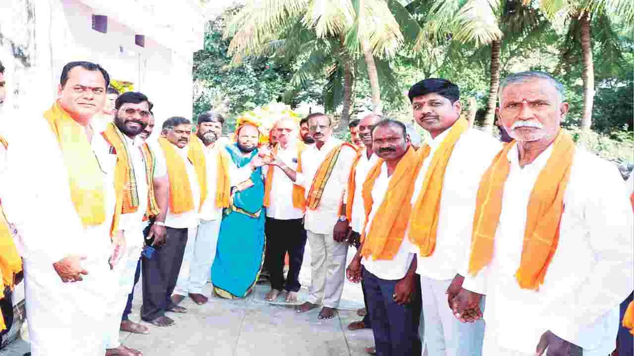 ఊర్కొండ, జనవరి 17 (ఆంధ్రజ్యోతి): అంగ రంగ వైభవంగా ఊర్కొండపేట అభయాంజ నేయ స్వామి వారి బ్రహ్మోత్సవాలు శనివా రం శకటోత్సవంతో ప్రారంభమయ్యాయి. నా గర్కర్నూల్ జిల్లా ఊర్కొండ మండలం ఊ ర్కొండపేట అభయాంజనేయ స్వామి వారి బ్రహ్మోత్సవాలు పుష్య బహుళ అమవాస్య తి థులయందు ఘనంగా ఉత్సవాలు (జాతర) నిర్వహిస్తుంటారు. ఈ ఉత్సవాలకు సుదూర ప్రాంతాలతో పాటు పరిసర గ్రామాల భక్తు లు స్వామి వారిని దర్శించుకొని వారి మొ క్కులను చెల్లించుకుంటారు. శనివారం ఉద యం ఊర్కొండపేట దివంగత చిరివెల్లి కృష్ణ మూర్తి అర్చకుల వారి గృహం నుంచి ఉత్స వమూర్తిని పల్లకీలో ఊరేగింపుగా మంగళ వాయిద్యాలతో భక్తుల సందడితో ఆలయ ప్ర వేశం చేయించారు. బ్రహ్మోత్సవాల సంద ర్భంగా స్థానిక నాయకులు ధ్వజారోహణంతో మూల స్వామికి పంచామృతభిషేకం, నూత న వస్త్ర ధారణ, వెండి ఆభరణాల అలంకర ణతో గణపతి నవగ్రహ అష్టదిక్పాలక హను మాన్ మూల మంత్ర ప్రధాన అవనం (హో మం) సహస్ర నామా ర్చన జరిపించారు. అ భయాంజనేయుడికి ప్రధాన అర్చకులు ద త్తా త్రేయశర్మ ప్రత్యేక పూజలు చేసిన అ నంతరం శకటోత్సవం ప్రారంభించారు. ఊ ర్కొండ పేట, ఊర్కొం డ, ముచ్చర్లపల్లి, రాం రెడ్డిపల్లి, జకినాలపల్లి, ఇప్పపహడ్, జిల్లెల్ల, మార్చాల, గట్టుఇప్పలపల్లి తదితర గ్రామాల నుంచి ఎడ్ల బండ్లు, ట్రాక్టర్లు, ద్విచక్ర వాహ నాలు, కార్లు భారీగా చేరుకొని ఆలయం చు ట్టూ ప్రద క్షిణం చేశారు. ఆలయ పరిసరాలు ఆంజనేయ నామస్మరణతో మారుమోగా యి. కల్వకుర్తి సీఐ నాగరాజు ఆధ్వర్యంలో ఎస్ఐ కృష్ణదేవ తమ సిబ్బందితో ఎప్పటిక ప్పుడు పర్యవేక్షిస్తూ ప్రశాంతమైన వాతావర ణం కల్పించారు. అదేవిధంగా వైద్య శాఖ అ ధికారు లు వైద్య శిబిరం ఏర్పాటు చేశారు. భక్తులకు ఎలాంటి ఆసౌకర్యం కలుగకుండా ఆలయ కార్యనిర్వహణాధికారి సత్యచంద్రారె డ్డి ఏర్పా ట్లు చేశారు. కార్యక్రమంలో సర్పం చులు రషీద్, రమేష్నా యక్, మ్యాకల మం జుల, జిల్లా కబడ్డీ అసోసియేషన్ అధ్యక్షుడు ముచ్చర్ల జనార్దన్రెడ్డి, నాయకులు సత్యనా రాయణ రెడ్డి అర్చకులు ప్రవీణ్శర్మ, మహే ష్శర్మ, శ్రీనివాసశర్మ తదితరులు ఉన్నారు.